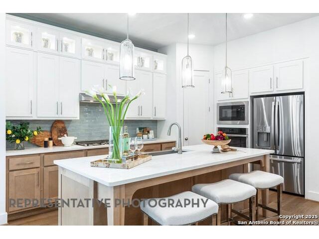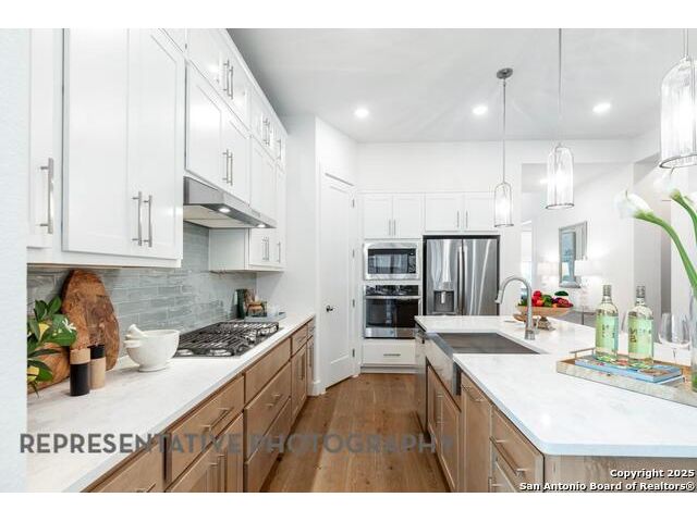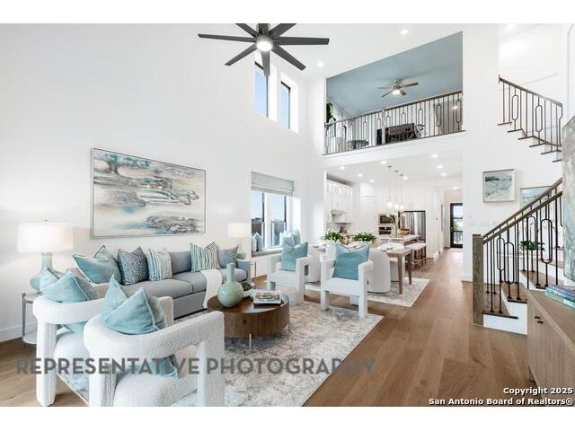 Last Opportunities at Weston Oaks! Great Incentives Available! True 3 car garage with a driveway 3 cars wide and an oversized flat backyard and side yard! Built with the quality and craftmanship you expect only in a Highland Home! Stunning 2 story built for entertainment. Love your outdoor living space? You definitely are going to enjoy this one. Perhaps one of the best features in the home is the amount of NATURAL LIGHT it attracts through the 2 story ceiling windows. But that's not all, wait until you see these CURVED STAIRS. A second bedroom is already downstairs so anyone visiting can stay on the 1st floor. Entertainment room upstairs flows very well with the play area. FULL Sprinkler system - 8FT DOORS down - TANKLESS water heater - just to mention few upgrades you will see throughout. A rare gem for sure!
