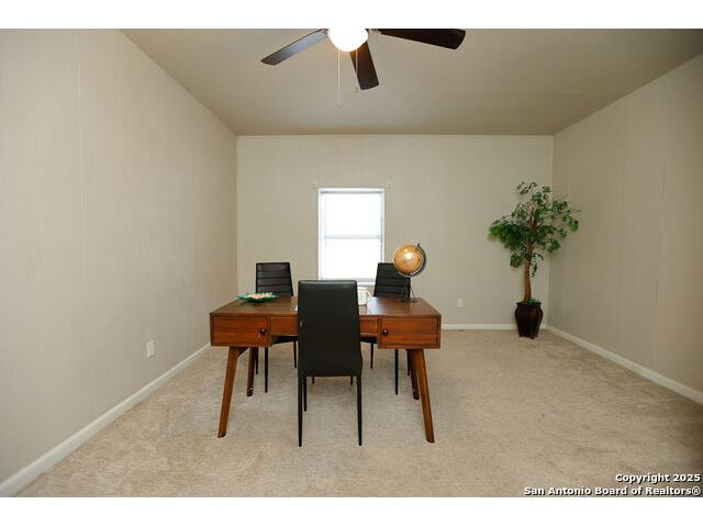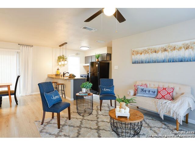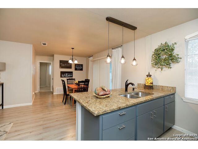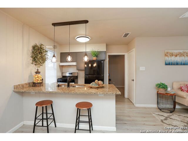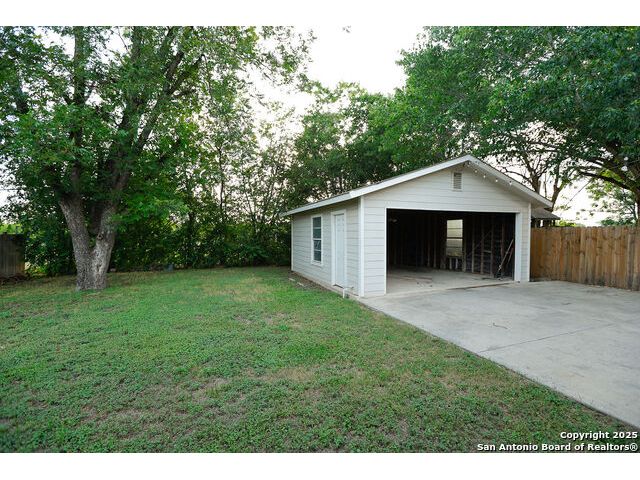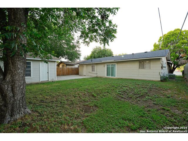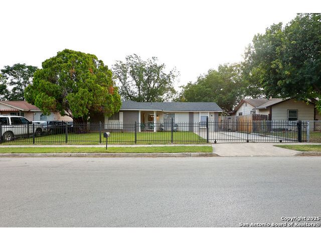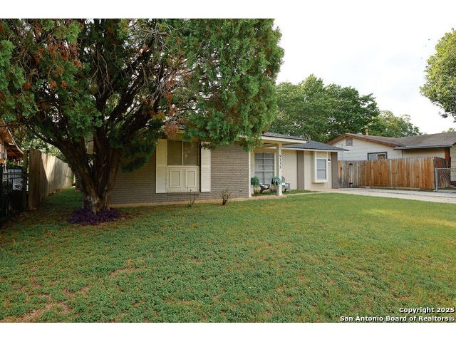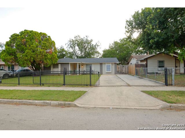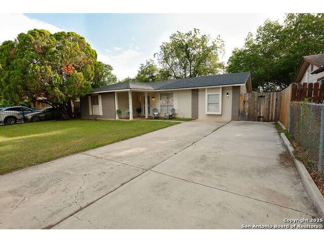 Welcome to your ideal beautiful home! This delightful home boasts 3 bedrooms and 2 bathrooms, offering ample space for comfortable living. Central AC ensures year-round comfort, while the interior dazzles with modern touches including granite countertops, new lighting fixtures throughout, ceiling fans in each room, gas stove, new cabinets, a bonus room that can be utilize for a potential game room, office or extra bedroom plus an indoor utility room. The home has a privacy wooden fence for the large backyard for endless activities. Detached garage with electricity that could potentially be converted to a studio apartment. NEW roof installed two years ago, ample space for parking, beautiful black front iron gate offers several benefits, including enhanced security, improved curb appeal, and increased property value. Minutes away from Texas A & M University, Palo Alto College, shopping and more! Come take a look at this BEAUTY.