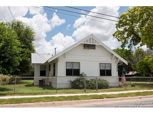 Charming 4-Bedroom Home on Oversized Lot with over 700 sf workshop - Full of Character & Upgrades! BCAD shows 1200 square feet, but home is much larger. Welcome to 3438 Weir Ave, a unique gem in San Antonio's west side with timeless charm and modern updates. Built in 1921, this spacious 4-bedroom, 2-bathroom home sits on a large lot within Edgewood ISD and just minutes from Lackland AFB-making it a great choice for military families or anyone seeking space, style, and convenience. Owner has updated all plumbing recently. The large lot brings tons of options for expansion. Inside, you'll find original hardwood floors throughout much of the home, some lovingly preserved under carpet. The home features updated bathrooms and a host of handcrafted details created by the previous owner, including custom wood shelves, spindles, and other distinctive touches that add warmth and personality. Step outside to enjoy a fully fenced backyard that's perfect for entertaining. A large concrete slab offers the ideal setting for BBQs, outdoor gatherings, or adding a patio setup. The detached 2-car garage includes a built-in workshop-perfect for hobbyists, tinkerers, or extra storage. Garage measures over 700 square feet and could be converted into a livable space. A durable metal roof provides peace of mind and long-term value. With its mix of character, craftsmanship, and modern updates, this home is ready for new memories. Don't miss your chance to own a piece of San Antonio history on a lot that offers room to grow!