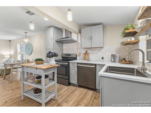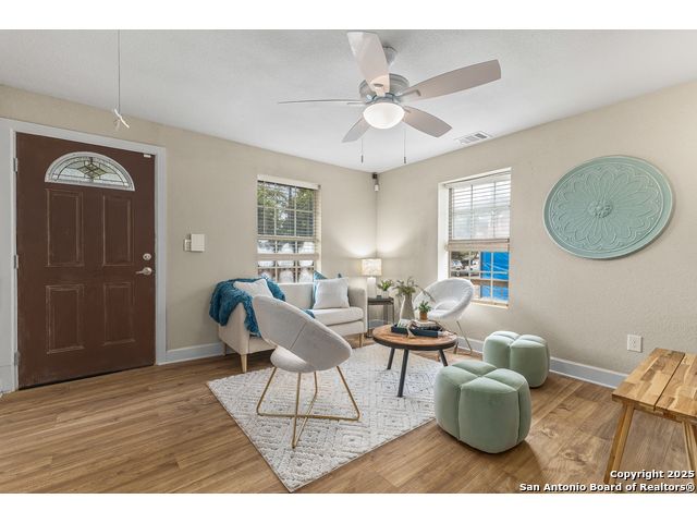 This freshly renovated home has all the modern vibes you've been searching for-stylish, move-in ready, and located just minutes from everything San Antonio has to offer! With 3 spacious bedrooms, 2 bathrooms, and over 1,150 square feet of open living space, this home is perfect for those who want both comfort and convenience. The sleek laminate flooring throughout makes it super easy to maintain while still looking on point. The open floor plan connects the living, dining, and kitchen areas, making it an ideal space for entertaining, chilling, or whatever your vibe is. Step outside onto your own wood deck in the backyard-whether it's brunch, evening cocktails, or some weekend relaxation, it's the perfect spot to unwind. Location is everything, and this home delivers. With easy access to I-10 and I-35, you're minutes away from major employers like the San Antonio International Airport and the Medical Center, plus local universities like St. Philip's College and the University of the Incarnate Word. Whether you're working, studying, or exploring the city, this spot has you covered. Ready to make this your next move?