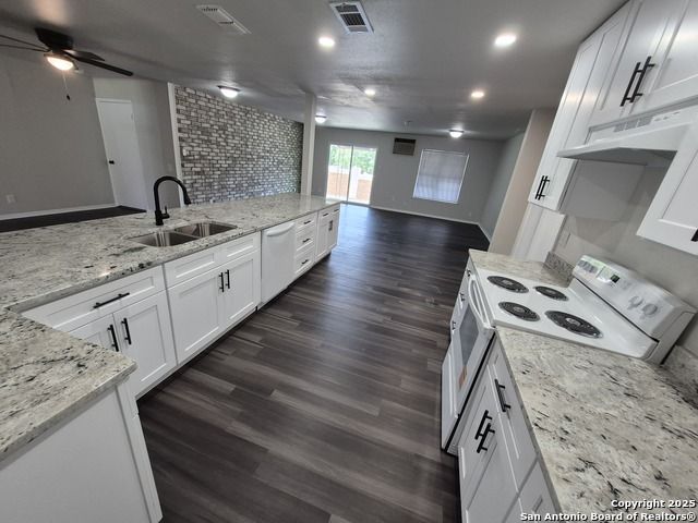 A charming single-story home located in San Antonio, TX. This cozy residence features 3 bedrooms and 2 bathrooms, perfect for those seeking a comfortable living space. This beautiful home has newly remodeled Kitchen, bathrooms and indoor laundry area. New paint and flooring throughout the home. The property includes a convenient two-car garage, ideal for parking or storage. Enjoy the convenience of washer/dryer connections in home, making laundry day a breeze. Stay cool and comfortable with ceiling fans in the living room and bedrooms. Step outside to the fenced backyard with a covered patio, perfect for outdoor gatherings or simply relaxing in the fresh air.