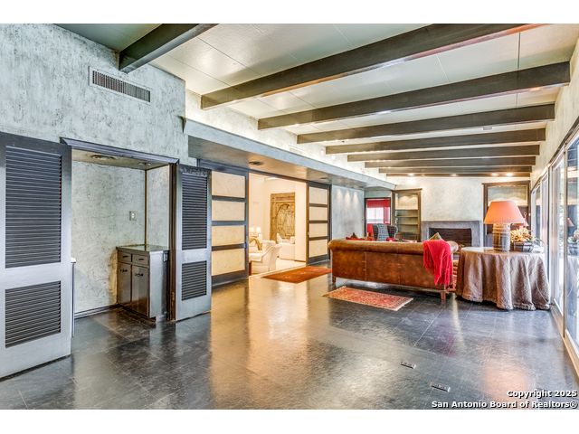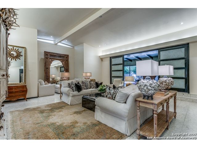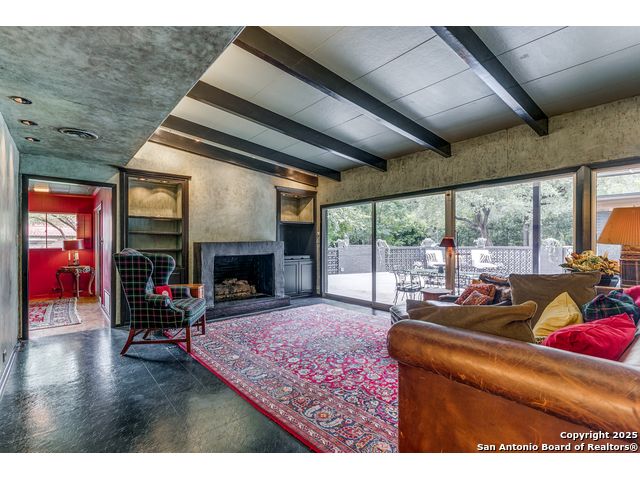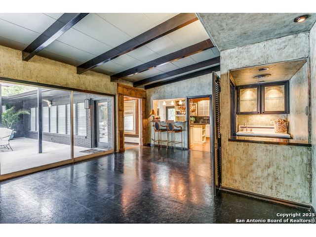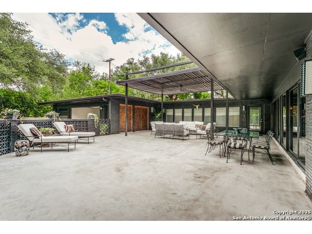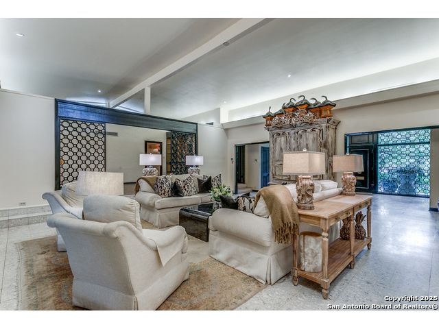 Dramatic one story contemporary styling offers oversized rooms, fabulous flow and a split bedroom arrangement that adapts to many needs. Terrazo at the entrance leads into an ultra high ceiling in the great room. Two steps up is the huge dining room with parquet flooring of all different woods. A nice sized family room with a fireplace and wet bar have an expanse of windows looking out to a gorgeous patio! The master suite and large study are on one side of the home and another large bedroom is behind the totally remodeled island kitchen. Down the hallway is another en-suite bedroom. Large 3 car garage! Fabulous storage through out. Large, Outdoor covered patio great for entertaining.