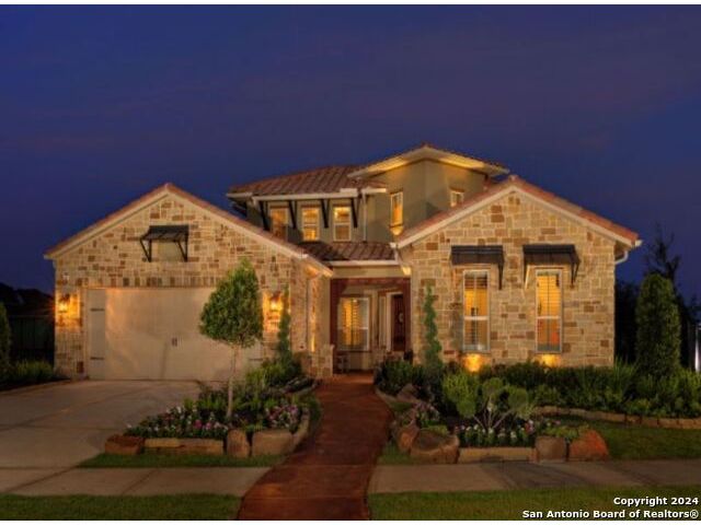Beautiful west facing (Durango floor plan) garden home with high ceilings, large covered east facing patio, side patio and 2 car garage. Nestled in the Ranches at Creekside luxury garden home section on a manicured greenbelt with quick acess to Highway 46 and a short drive to downtown Boerne, HEB and IH10. This home has 3 bedrooms, 3 full baths and features include: pantry and 2 large storage closets; large fixed glass windows which give plenty of interior light; open floorplan with bathroom for each bedroom; 5.1 surround sound pre-wired, z-wave package and 2 pre-wires for security cameras.