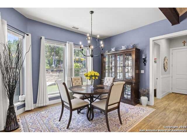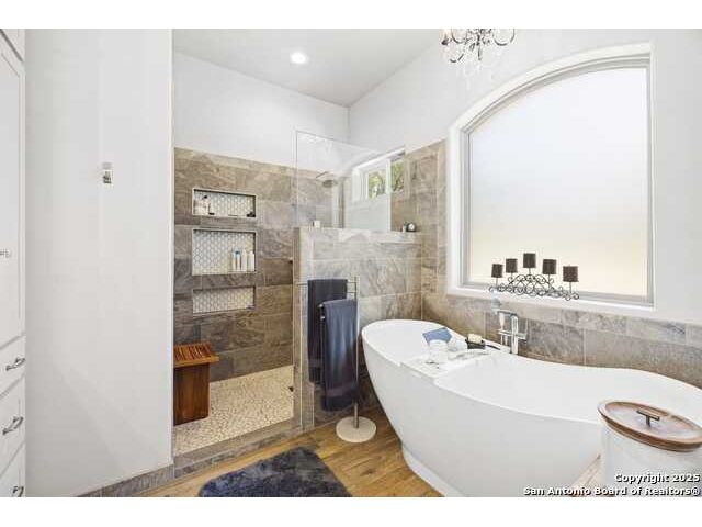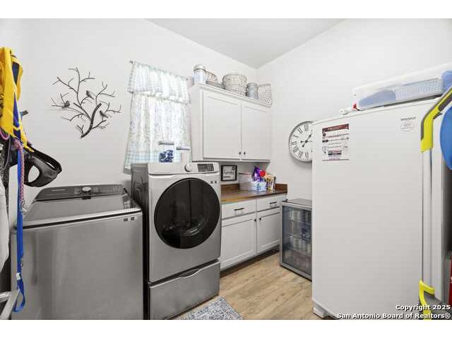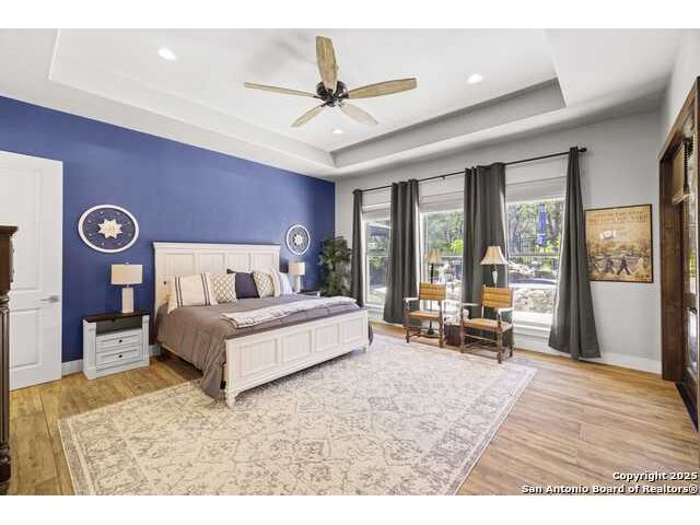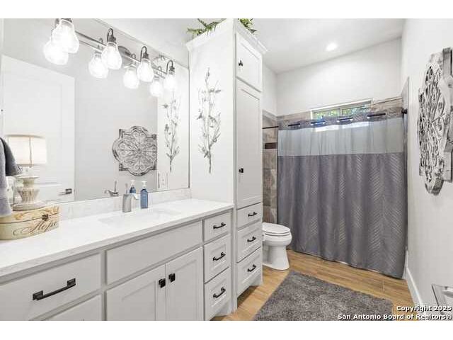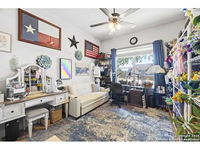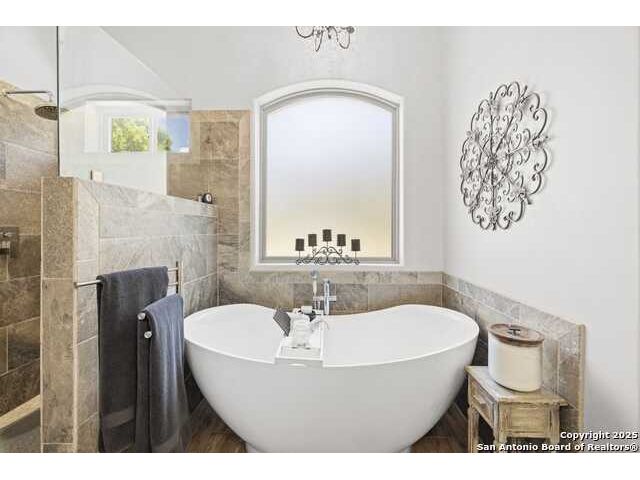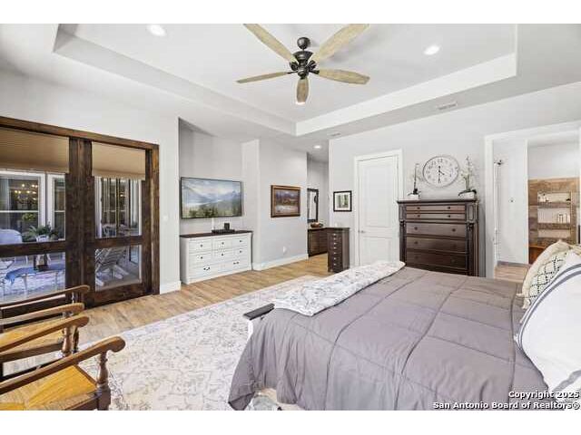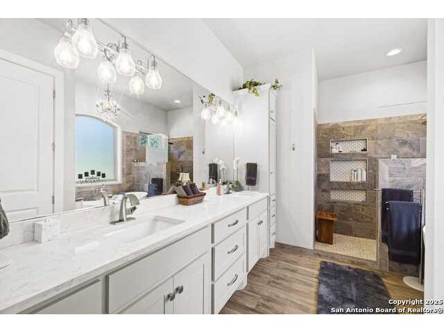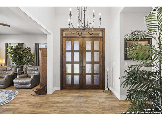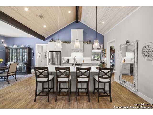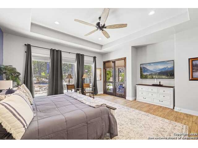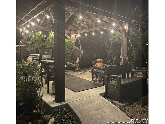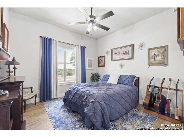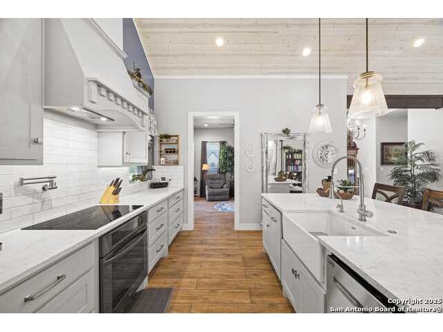 Welcome to your own piece of Texas Hill Country heaven, nestled on a beautifully landscaped corner acre in the prestigious Las Colinas development of Kerrville. From the moment you arrive, this custom-crafted home greets you with Hill Country elegance, smart design, and an effortless indoor-outdoor lifestyle. As you step inside, you're welcomed by soaring 15-foot cathedral ceilings accented with a striking exposed wood beam. The living area glows with warmth from the wood-burning fireplace, framed by custom alder doors that open wide to your private outdoor sanctuary. Beneath your feet, wide plank tile floors run throughout the home, combining style and durability with ease of maintenance. The chef's kitchen is a dream-complete with a farmhouse sink, pot filler, engineered quartz countertops, custom cabinetry, and a designer walk-in pantry featuring a wine fridge and built-in microwave. Whether you're hosting holiday dinners or enjoying a quiet evening at home, this space is designed for both beauty and functionality. The 3-bedroom, 2.5-bath layout includes a spacious primary suite and generous storage throughout. With ceilings ranging from 10 to 18 feet, every room feels airy and grand. Designer-selected colors and beautiful Roman shades add a refined, custom feel. Energy efficiency and comfort are top of mind here: spray foam insulation, a water softener, R/O system, and fiber-optic network connectivity are all in place. The fully insulated 2-car garage includes a built-in workshop, perfect for projects or hobbies. Step outside, and you'll discover the showstopper: a heated spool (spa + pool) with a custom cover, perfectly placed in the terraced backyard surrounded by Lueders stone, Hardie board & batten siding, and a standing seam metal roof-all chosen for timeless beauty and durability. Entertain under the pergola with an outdoor ceiling fan, stroll the stone pathway to your greenhouse, or enjoy your raised garden beds, ready for seasonal planting. Extensive landscaping, full irrigation, and strategic tree placement provide beauty, shade, and privacy year-round. This is more than a house-it's a thoughtfully crafted retreat that celebrates Hill Country living at its finest. Don't miss the chance to experience the perfect blend of upscale Hill Country charm, smart design, and outdoor living - all tucked within one of Kerrville's most sought-after communities.