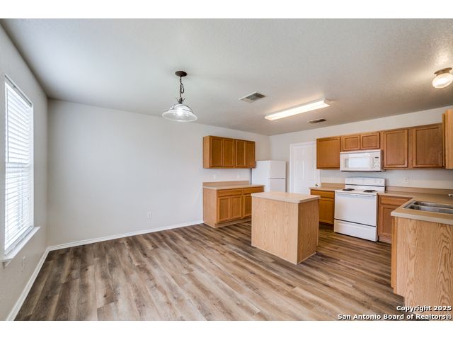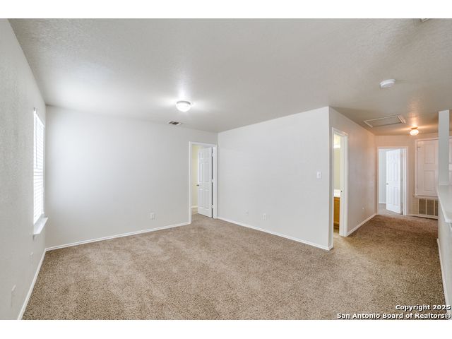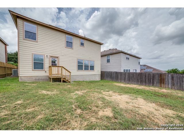 Located in the sought-after Ridge at Leon Valley, 5616 Poppy Seed Run offers over 2,400 square feet of flexible living space designed for modern lifestyles. This 4-bedroom, 2.5-bath home features an open-concept floor plan with two living areas, two dining spaces, and a functional island kitchen with a breakfast bar and walk-in pantry/laundry combo. All bedrooms are upstairs, including an oversized primary suite with a walk-in closet, dual vanities, and a tub/shower combo. A second-floor loft provides the perfect flex space for a home office, playroom, or media area. Step outside to a spacious backyard-ideal for entertaining or relaxing. Located minutes from major highways, shopping, dining, and Northside ISD schools, this home delivers convenience and comfort. Additional highlights include: attached two-car garage, high ceilings, central HVAC and ceiling fans.
