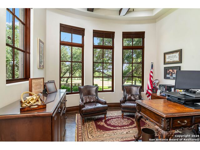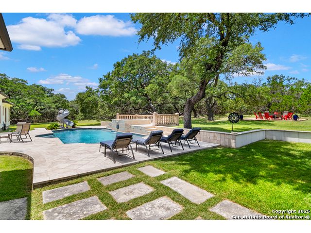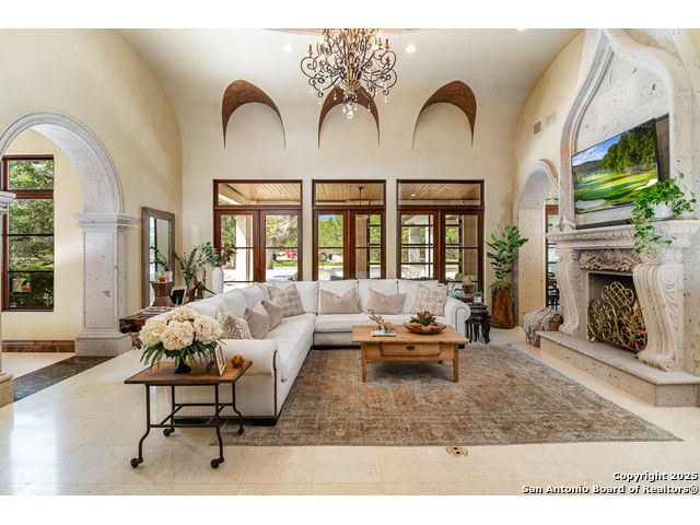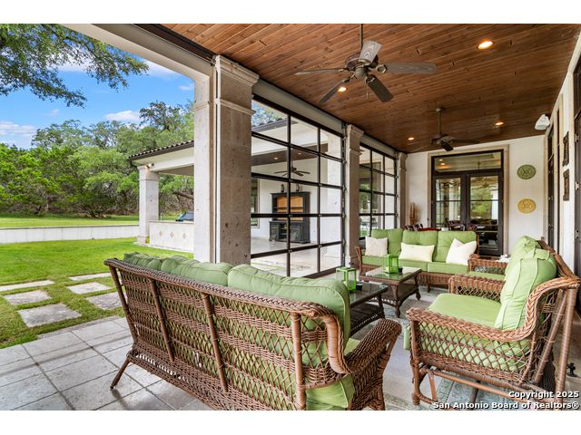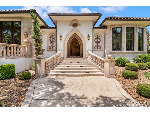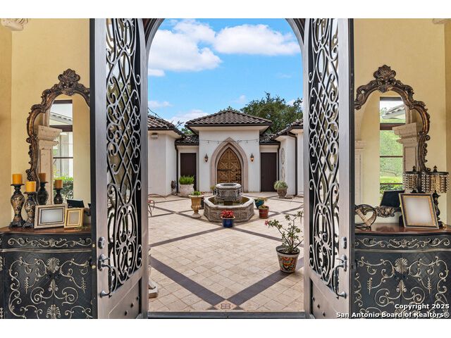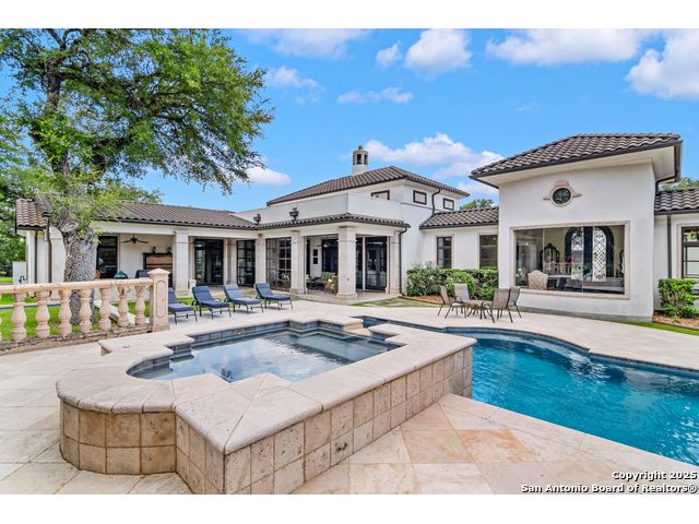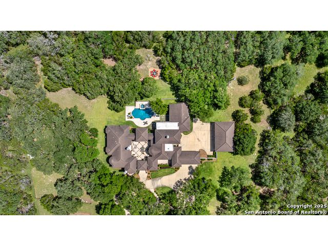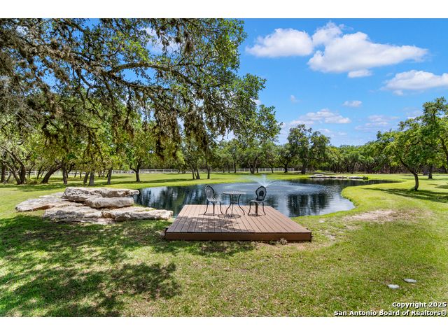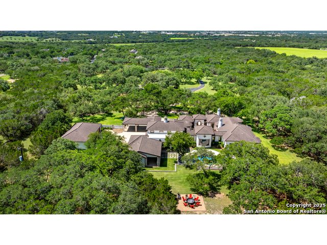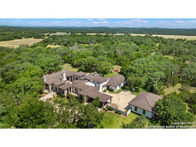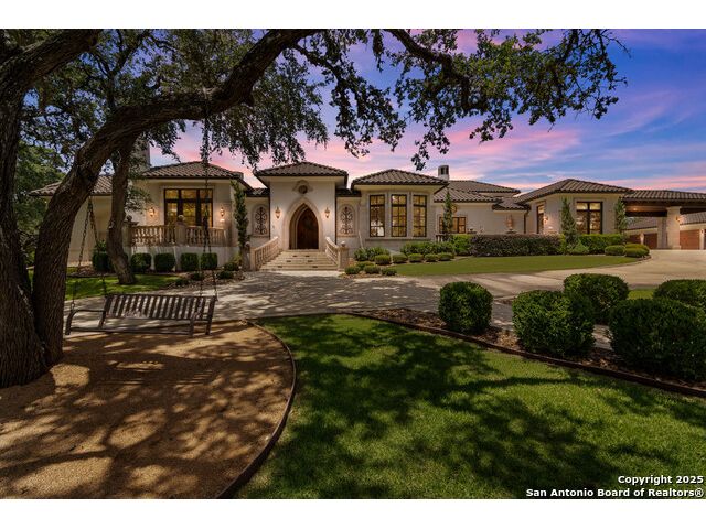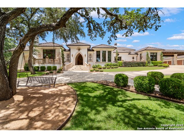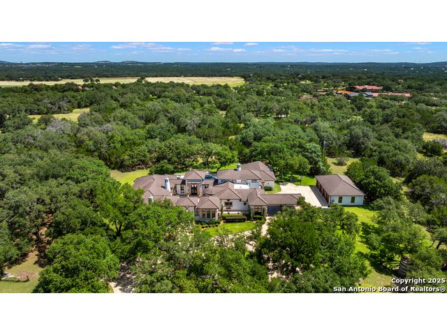 Discover a hidden gem in the perfect location. 37 Old Fredericksburg Rd in Boerne, TX, an inviting estate nestled on just over 10 acres of peaceful Hill Country landscape with an agricultural tax exemption. As you arrive, an impressive, gated entrance leads you down a scenic drive, hinting at the grandeur within, leading you to a home that's been thoughtfully designed to blend beauty, privacy, and luxury. The property offers a gentle balance of wide-open space and quiet privacy, with mature trees framing manicured lawns and a tranquil pond with a charming fountain. A professional grade putting green for the golf enthusiast, while the overall setting invites you to slow down and take in the surrounding nature, ensuring privacy and picturesque views from every angle. The main residence reflects timeless Spanish-inspired design, a masterpiece featuring a stunning stucco exterior adorned with elegant Cantera stone accents, graceful arches, and a grand entryway that welcomes you into a world of refined elegance. Inside, the spaces are open, light-filled, and thoughtfully arranged. Including a formal living room with striking vaulted ceilings and fireplace, and a formal dining room perfect for gatherings and entertainment. The gourmet kitchen is a chef's dream, both beautiful and functional-custom cabinetry, high-end appliances, and two large islands. Each bedroom provides a peaceful retreat, each with unique touches and views. The luxurious master suite features a private fireplace and an opulent en-suite bathroom with a freestanding tub and ample storage. Dedicated home offices provide ideal spaces for work or study. The home naturally flows to the outdoor living spaces, designed for memories to be made. A sparkling swimming pool with a slide and elevated spa offers a refreshing escape on warm days, surrounded by ample patio space for lounging and entertaining. An enclosed outdoor living area provides a comfortable space for al fresco dining, conversation, and relaxation. The expansive grounds also include a productive garden, a treehouse and swings, and a convenient storage shed. A spacious detached four-car garage provides plenty of room for vehicles and storage. This exceptional property at 37 Old Fredericksburg Rd is more than just a home; it's a private hidden gem offering a lifestyle of tranquility and luxury with easy access to everything the epitome of Texas Hill Country living has to offer.