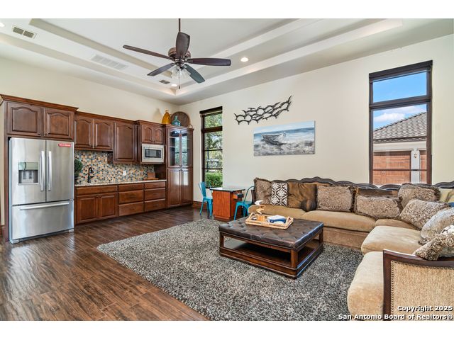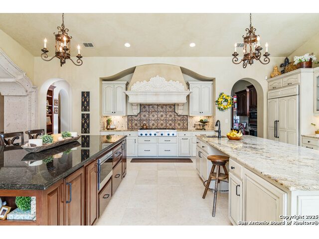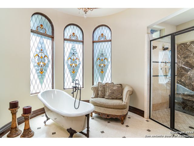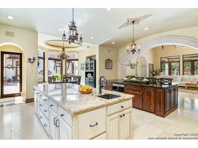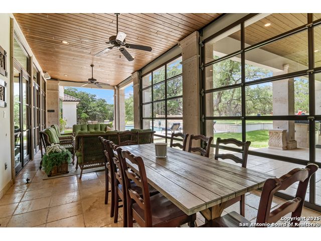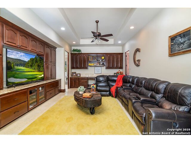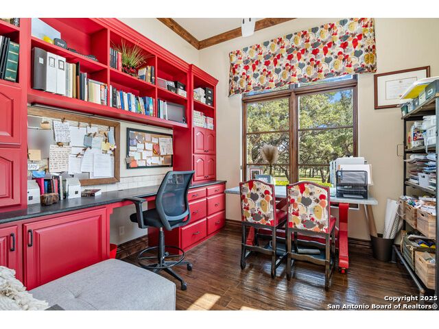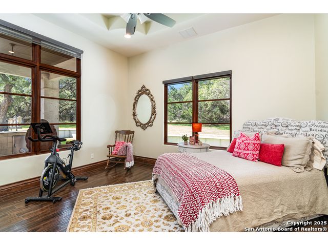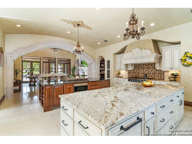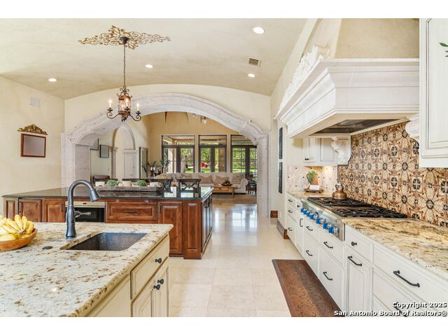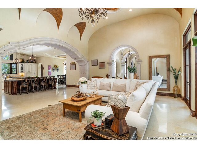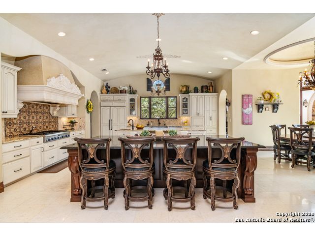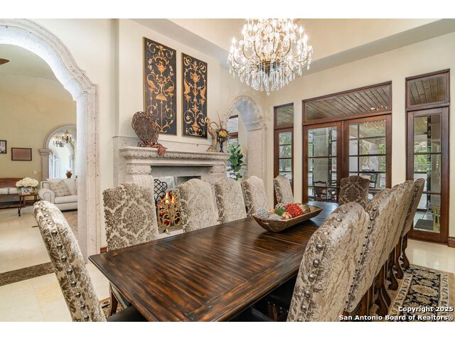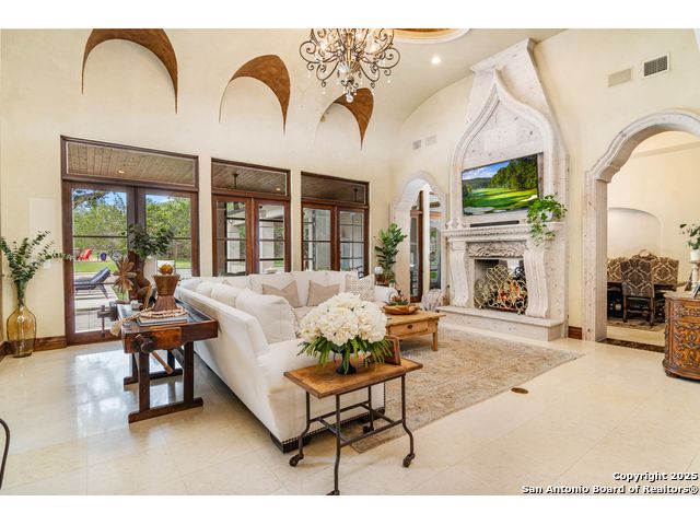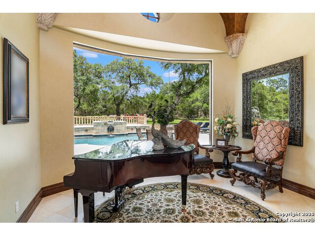 Discover a hidden gem in the perfect location. 37 Old Fredericksburg Rd in Boerne, TX, an inviting estate nestled on just over 10 acres of peaceful Hill Country landscape with an agricultural tax exemption. As you arrive, an impressive, gated entrance leads you down a scenic drive, hinting at the grandeur within, leading you to a home that's been thoughtfully designed to blend beauty, privacy, and luxury. The property offers a gentle balance of wide-open space and quiet privacy, with mature trees framing manicured lawns and a tranquil pond with a charming fountain. A professional grade putting green for the golf enthusiast, while the overall setting invites you to slow down and take in the surrounding nature, ensuring privacy and picturesque views from every angle. The main residence reflects timeless Spanish-inspired design, a masterpiece featuring a stunning stucco exterior adorned with elegant Cantera stone accents, graceful arches, and a grand entryway that welcomes you into a world of refined elegance. Inside, the spaces are open, light-filled, and thoughtfully arranged. Including a formal living room with striking vaulted ceilings and fireplace, and a formal dining room perfect for gatherings and entertainment. The gourmet kitchen is a chef's dream, both beautiful and functional-custom cabinetry, high-end appliances, and two large islands. Each bedroom provides a peaceful retreat, each with unique touches and views. The luxurious master suite features a private fireplace and an opulent en-suite bathroom with a freestanding tub and ample storage. Dedicated home offices provide ideal spaces for work or study. The home naturally flows to the outdoor living spaces, designed for memories to be made. A sparkling swimming pool with a slide and elevated spa offers a refreshing escape on warm days, surrounded by ample patio space for lounging and entertaining. An enclosed outdoor living area provides a comfortable space for al fresco dining, conversation, and relaxation. The expansive grounds also include a productive garden, a treehouse and swings, and a convenient storage shed. A spacious detached four-car garage provides plenty of room for vehicles and storage. This exceptional property at 37 Old Fredericksburg Rd is more than just a home; it's a private hidden gem offering a lifestyle of tranquility and luxury with easy access to everything the epitome of Texas Hill Country living has to offer.
