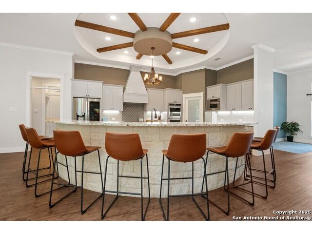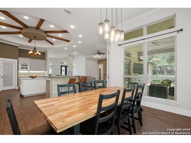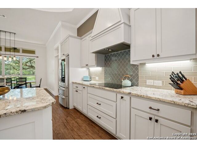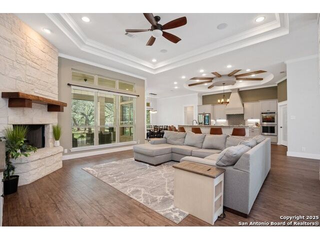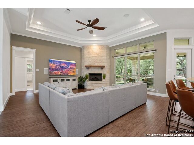 **4.25% Assumable VA Loan Available To Qualified Buyer**Gorgeous 4-bedroom, 2.5-bath home situated on a tranquil 1.17-acre lot in the peaceful community of Rockwall Ranch. This property offers an open-concept floor plan with high ceilings and an abundance of natural light pouring through large windows, creating a bright and airy feel throughout the home. Decorative lighting and tasteful finishes add character to every room. The spacious living area features a floor-to-ceiling stone fireplace and beautiful backyard views, offering a cozy space for relaxing or entertaining. A formal dining room provides a dedicated area for gatherings and special meals. The open kitchen is well-appointed with a large island, breakfast bar, stainless steel appliances, double ovens, and an impressive walk-in pantry with space for a second refrigerator. The oversized primary suite includes dual walk-in closets and a private layout for added comfort. Mature oak trees blanket the property, offering shade and natural beauty year-round. Recent updates include a new water heater, high-end water filtration system, and a water softener installed in 2022. Step outside to a generous backyard with a covered patio and plenty of room to enjoy the outdoors. Don't miss your chance to experience the charm and space this property offers-schedule your showing today.