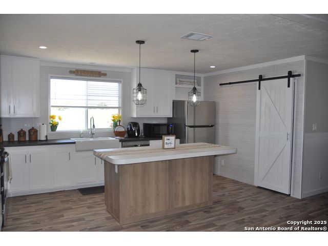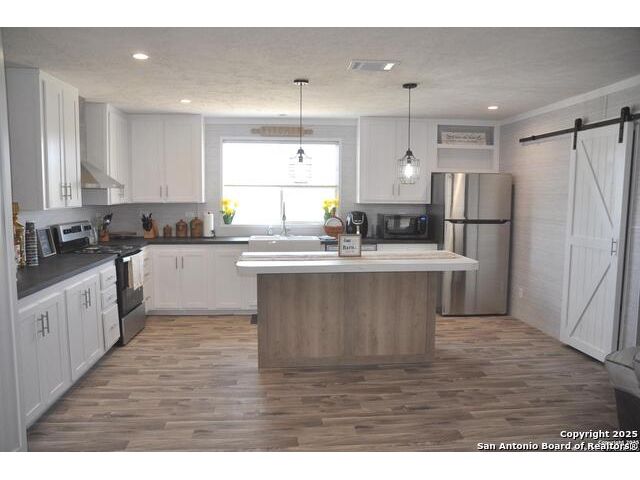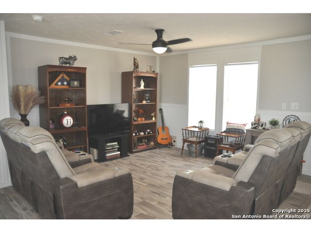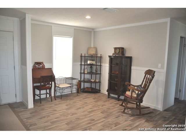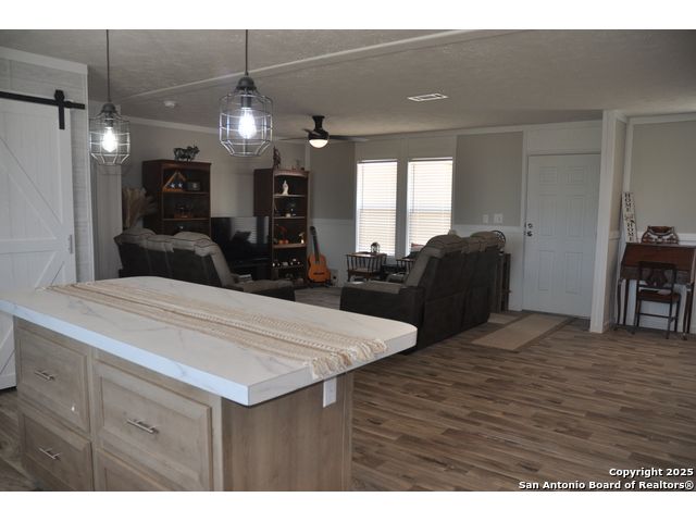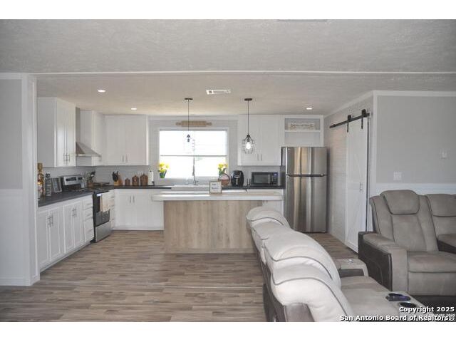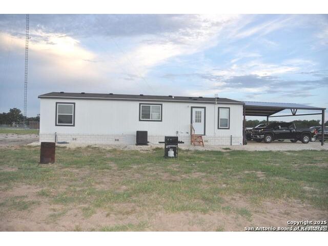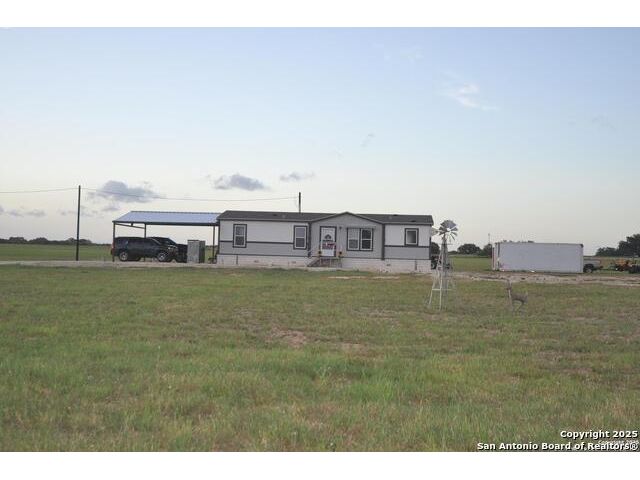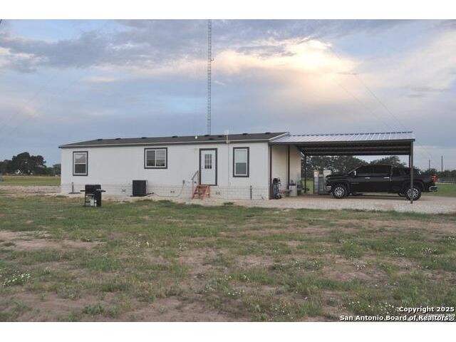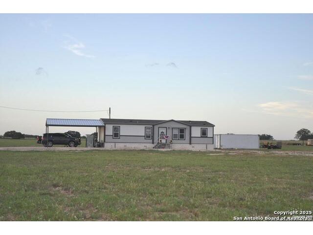 New Manufactured Home - offers over 1300 sq. feet - open floor plan - chef's kitchen with oversized island - perfect for entertaining - home has been retro-filled for a loan - sits on 11.683 acres - new survey - under current ag exemption for cattle grazing - new front and back decks just completed! - perfect for watching sunrise and sunsets - new two car carport - property is located close to IH 35 for commuting to San Antonio.