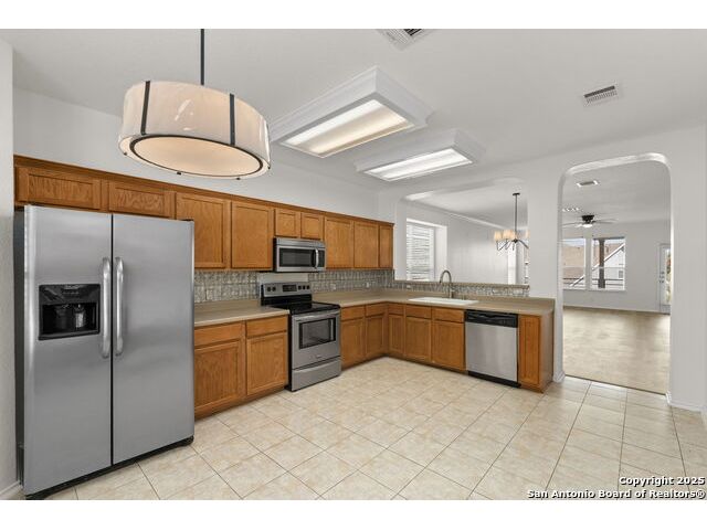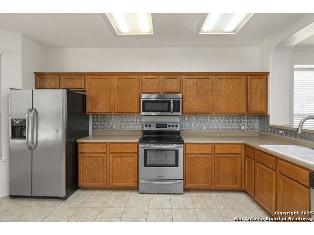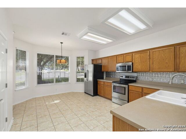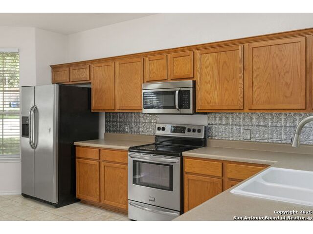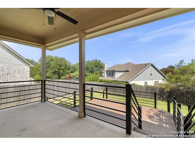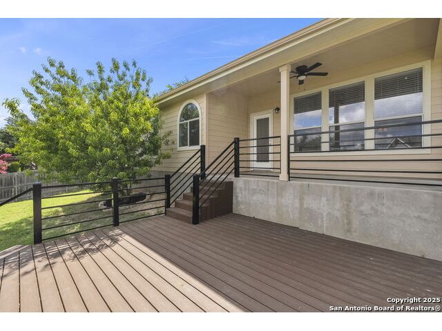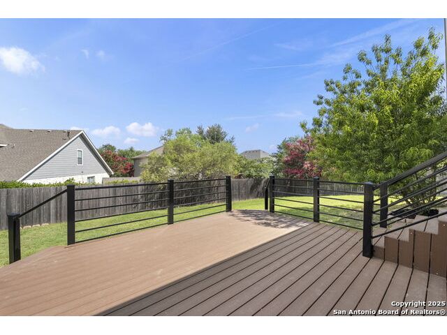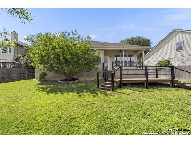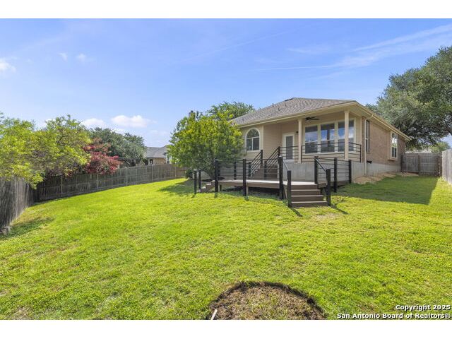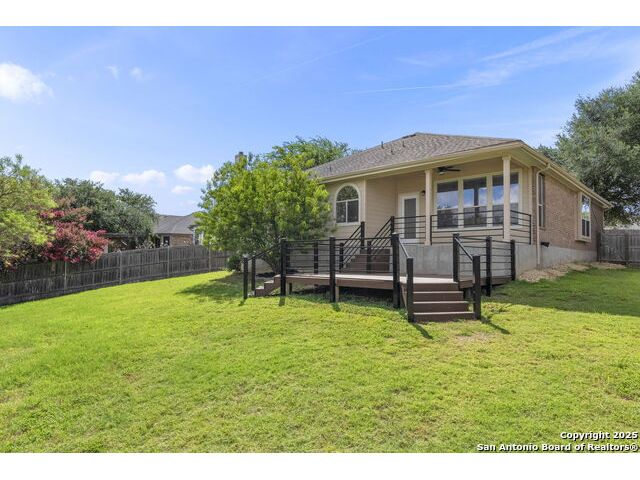 ** 1% LENDER CONCESSIONS USING OUR PREFERRED LENDER** Natural light fills this inviting 3-bedroom, 2-bathroom home in a peaceful New Braunfels neighborhood. The bright open layout creates effortless flow between the spacious living area and kitchen, making it easy to host friends or enjoy quiet evenings at home. The kitchen is a standout feature, equipped with stainless steel appliances, generous cabinetry, a cozy breakfast nook, and a built-in planning area that adds convenience to your daily routine. Plush carpeting adds warmth to the bedrooms, including a comfortable primary suite complete with a walk-in closet, garden tub, and private en suite bath. Step outside to a beautifully maintained backyard with a covered patio and a tiered deck-perfect for entertaining or relaxing under the Texas sky. Located on a quiet knuckle street with easy access to Highway 46, this home offers both tranquility and convenience. H-E-B, shopping, and dining are just minutes away, making this a wonderful place to call home.