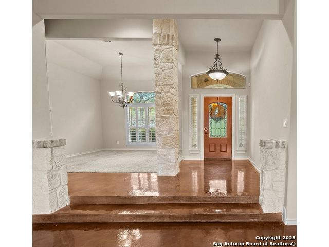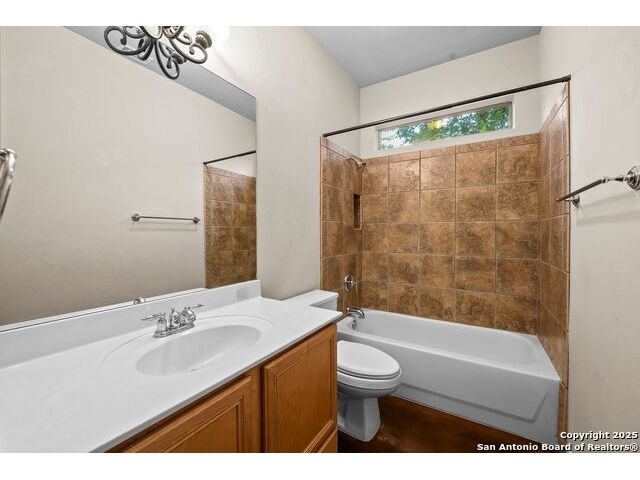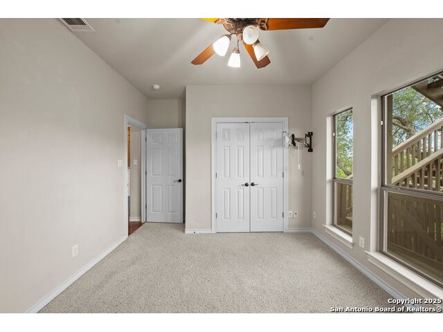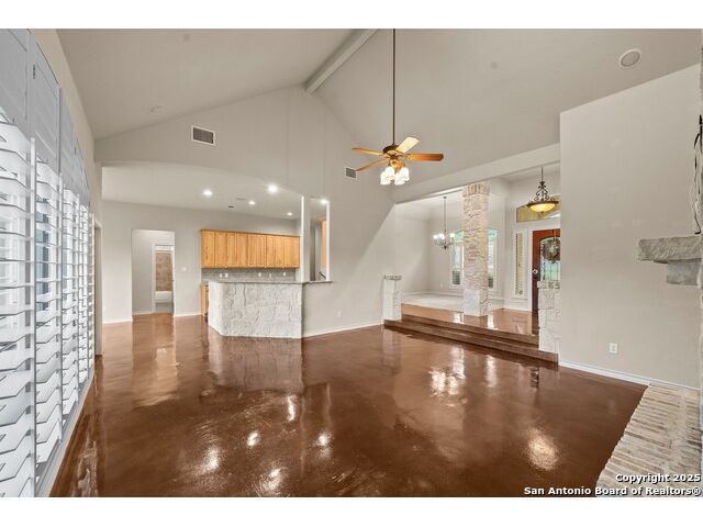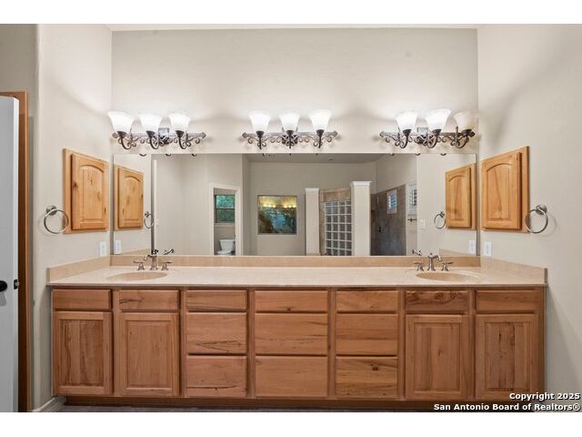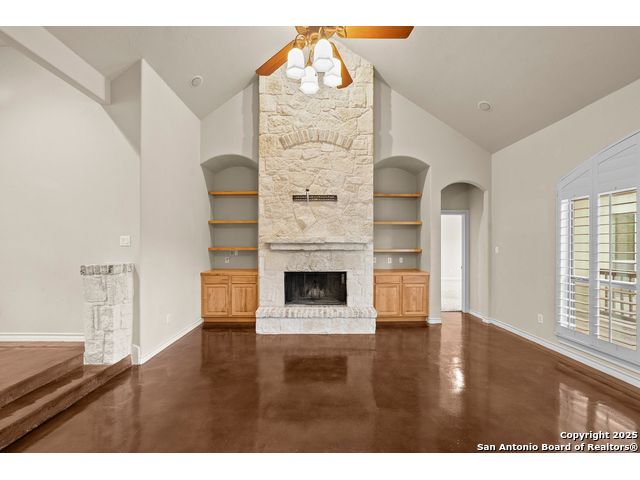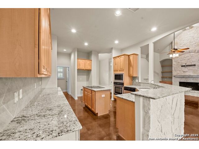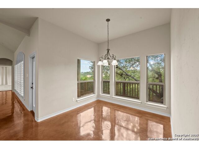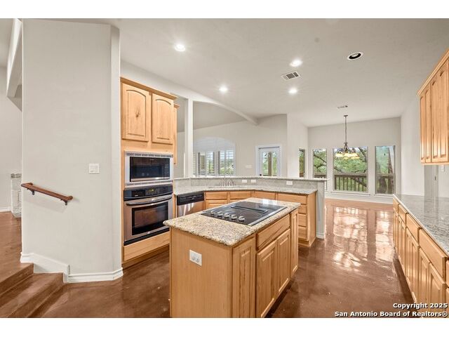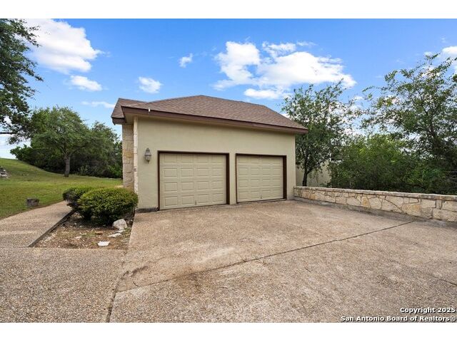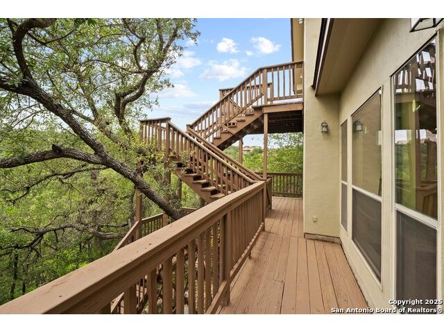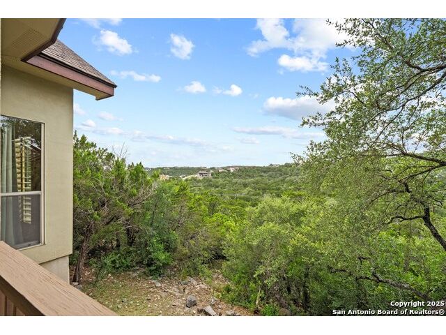 Tucked away on a private 1.5-acre greenbelt lot in the coveted Estates at Iron Horse Canyon, this custom Dale Sauer home offers the perfect blend of serene Hill Country living and unbeatable convenience. Backing to Government Canyon State Natural Area and surrounded by mature trees, the property showcases sweeping bluff views and rare seclusion-just minutes from the world's largest H-E-B, Floore's Country Store, and Helotes Disc Golf & Fitness Park. Enjoy access to neighborhood amenities including a sparkling pool, covered pavilion, shaded playground with picnic tables, and a full-size basketball court. Inside, nearly 2,800 square feet of well-designed living space features a large game/media room, stained concrete floors, an updated kitchen with granite countertops and stainless steel appliances, and a spacious primary suite with a whirlpool tub and oversized dual-head shower. Soaring ceilings, skylights, and wood shutters add custom charm, while outdoor living is elevated by a covered patio and two open decks-perfect for taking in those Texas sunsets. With its hilltop setting, breathtaking views, and exceptional value, this Helotes gem is not to be missed.