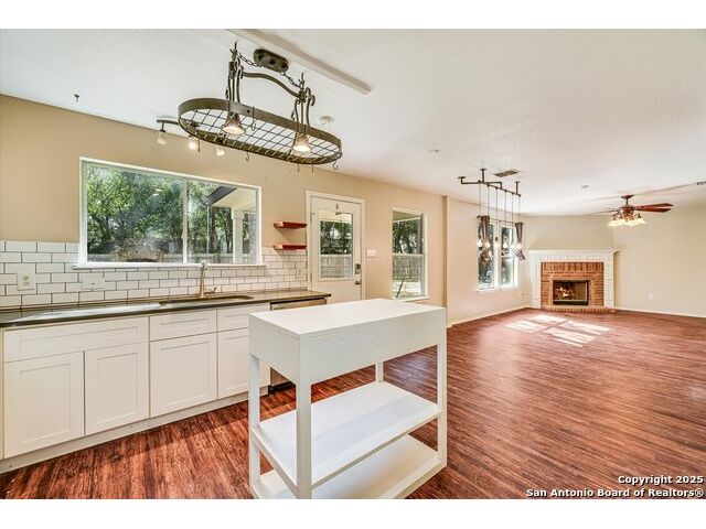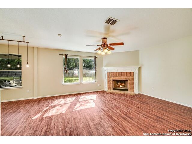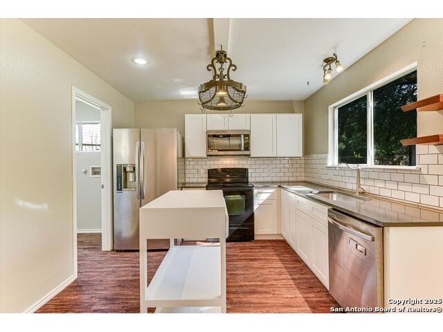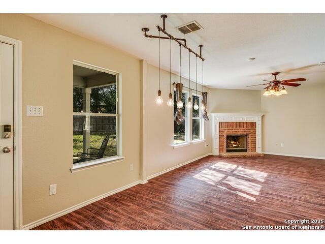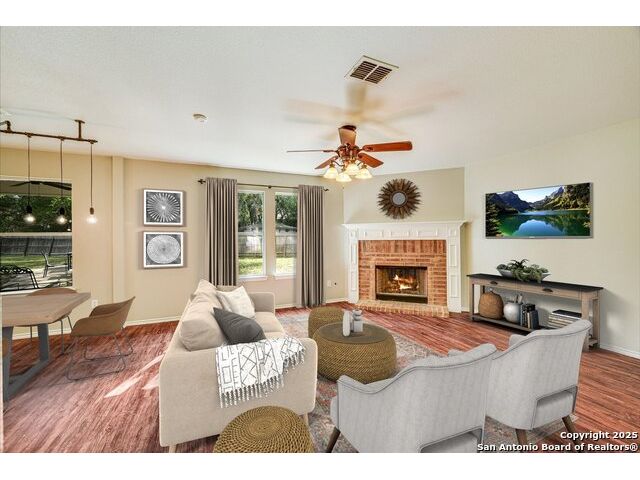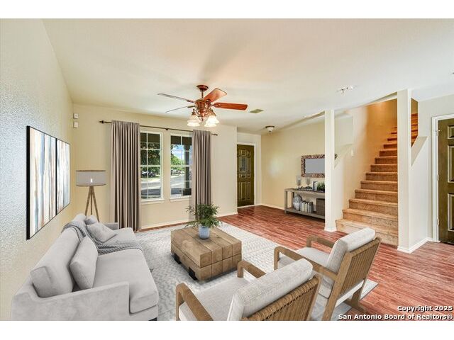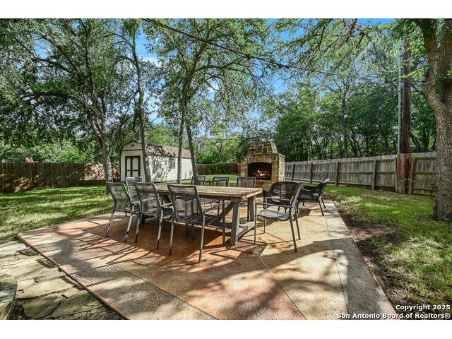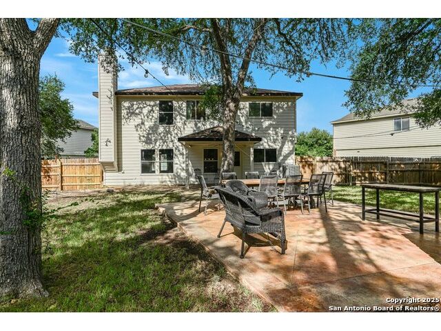 Beautifully updated 3-bedroom, 2.5-bath home in Northside ISD, tucked away in a quiet cul-de-sac. All bedrooms and a versatile office/flex space are upstairs, providing privacy and functionality. The open floor plan downstairs flows into a kitchen with unique lighting and plenty of room for entertaining. Step outside to your backyard oasis featuring a custom fireplace, 22x18 covered patio, mature trees, and a storage shed. Neighborhood offers a park, playground, and sports court. Conveniently located near 1604 and Kyle Seale Pkwy!