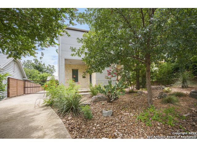 **Seller offering $10,000 towards buyers closing costs, price reduction, or interest rate buy down. MOTIVATED SELLERS-BRING ALL OFFERS**Discover this custom-built contemporary home in the charming Woodlawn Terrace neighborhood. Built in 2009, this stylish home features a metal roof, custom metal front door, automatic gate, privacy fencing, and easy-care xeriscape landscaping. Inside, enjoy an open layout with concrete floors downstairs, bamboo wood upstairs, and a gourmet kitchen with granite counters and maple cabinets. This well maintained home offers a water softener, recently replace HVAC in 2020 and a pass through outlet for a generator on the patio. The spacious primary suite has a large walk-in closet and oversized shower. Relax or entertain on the covered patio or the expansive trek deck with beautiful views of downtown San Antonio. A detached oversized two-car garage completes this modern retreat - just minutes from Woodlawn Lake Park!