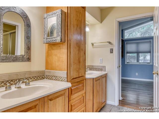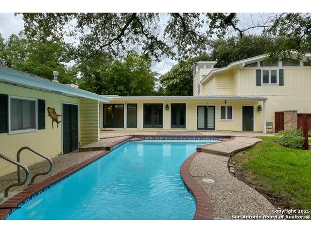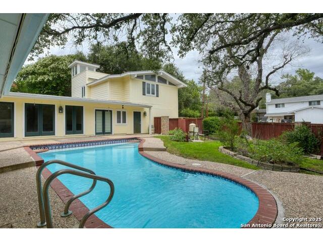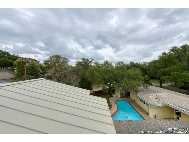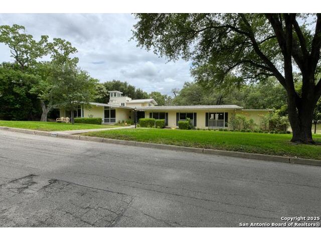 This stunning corner lot in Terrell Hills host a house with unique curb appeal and so many possiblities... "Lean into" the Mid Centurty Modern vibe, or consider it a "Rambling Ranch", This one is waiting for your new direction. This property has 2 living areas, 2 dining areas, 5 full Bedrooms, + office, and 4 full bathrooms. Don't miss the 3rd Story Widows Walk, it is such a nice surprise! The house also has an oversized 2 car garage, with extensive storage, as well as a 2 car carport. The beautiful windows and "U" Shape Floorplan hug the pool and provide tons of outdoor living space. Great Bang for your Buck in this one!