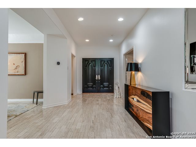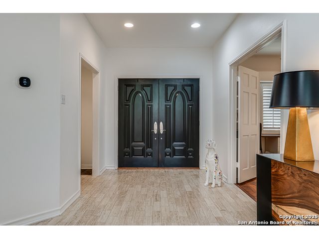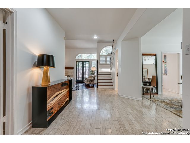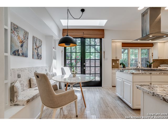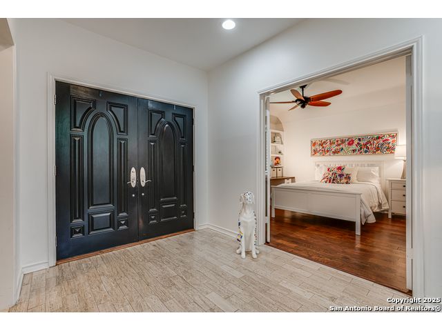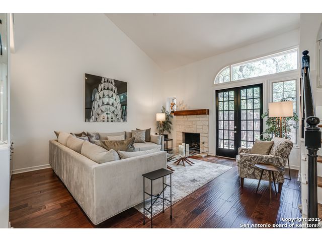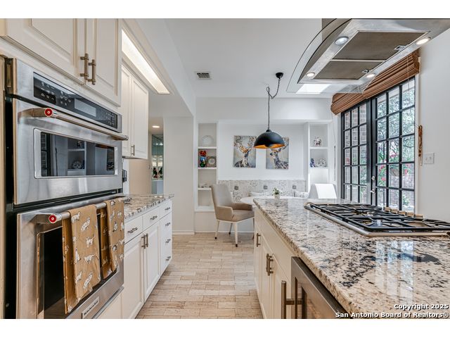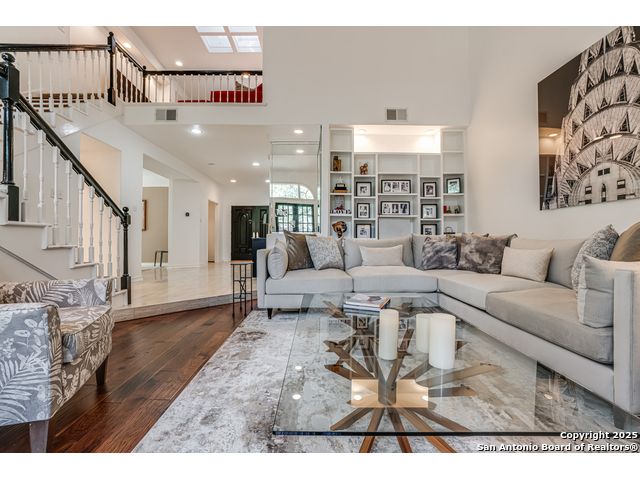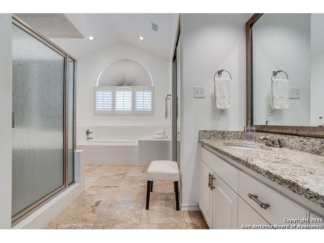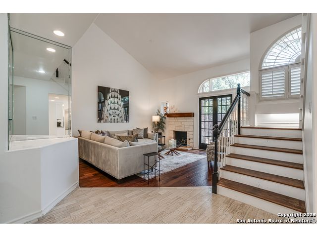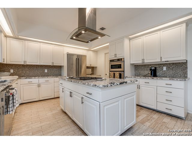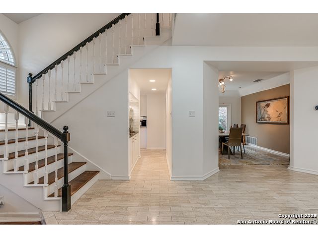This exquisite two-story townhome offers a rare combination of sophistication, comfort, and convenience in the prestigious, guard-gated community of Elm Creek. Featuring 3 spacious bedrooms, each with its en-suite bathroom, this home provides exceptional privacy and flexibility, including a first-floor secondary suite ideal for guests or multigenerational living. The inviting living area is filled with natural light and showcases soaring ceilings, a cozy fireplace, and large windows with skylights. The chef's kitchen boasts generous cabinetry, a central island, and direct access to a private patio perfect for morning coffee or evening relaxation. Upstairs, the expansive owner's retreat offers high ceilings and a versatile extra space ideal for a home office, fitness area, or reading nook. A second upstairs bedroom and a loft area provide the perfect setup for a TV or game room. There is an extra space on the first floor, previously used as a pet suite and caretaker quarters, complete with a full bath. Step outside to enjoy a peaceful backyard that backs onto green space, just a one-minute walk from the community pool. To make your move even easier, the home includes a refrigerator, wine cooler, washer, and dryer. HVAC outside units were replaced in 2021, and smart thermostats were added. Enjoy 24-hour guarded access and a prime location near premier dining, shopping, and major highways. This is low-maintenance luxury living at its finest.