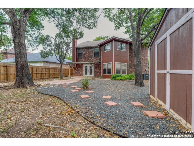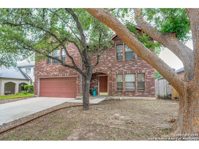 Charming 3-bed, 2.5-bath home in the sought-after Parkwood community with a bright, open floor plan! The living room invites you in with a cozy fireplace, built-in shelving, and modern travertine tile. The well-appointed kitchen features granite countertops and an oversized pantry/laundry room. Upstairs, the spacious primary suite offers extra room for a sitting area, nursery, or home office, along with a bath that includes dual vanities for added personal space. Secondary bedrooms come with generous closets, and a large game room completes the upstairs retreat. Outside, enjoy a private backyard escape with a storage shed perfect for gardening tools. Conveniently located near USAA, UTSA, La Cantera, and Fiesta Texas-this turnkey home is ready for move-in just in time for the new school year!