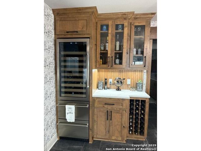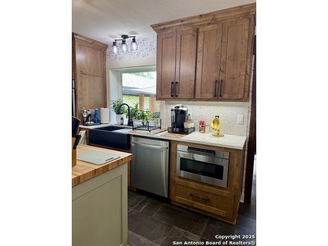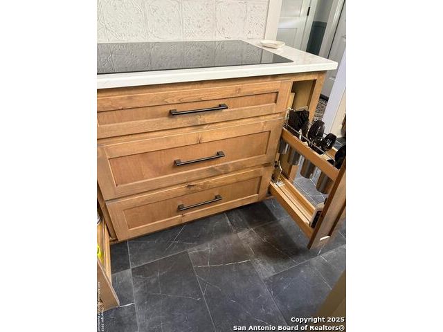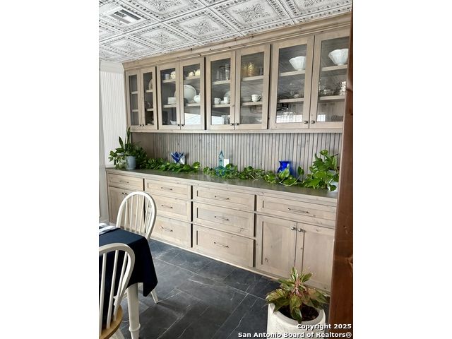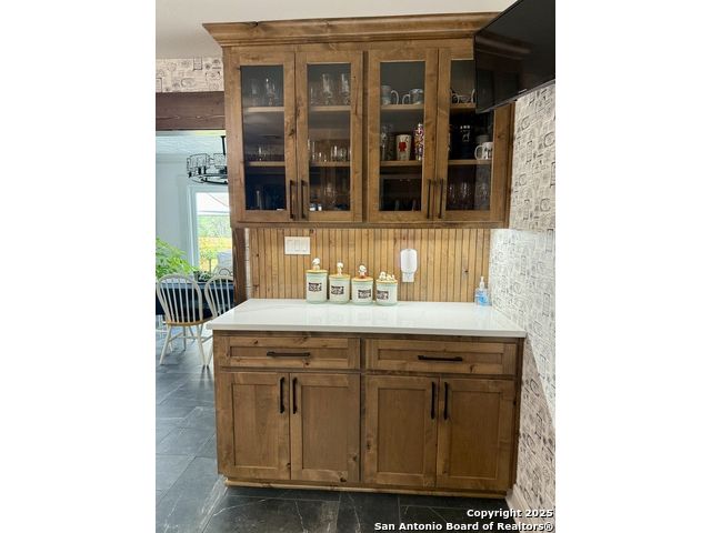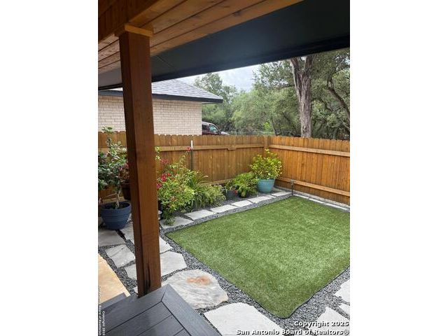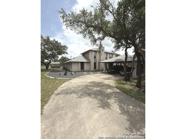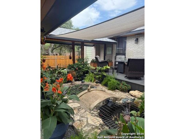Welcome to this exquisite one-of-a-kind 3-bedroom, 2-bathroom 2734 sq. ft. recently renovated residence, tucked away in the heart of Bulverde, surrounded by mature oak trees on a sprawling 1.827-acre lot. The expansive lot provides a peaceful retreat with plenty of space for adding a pool & a guest house, and/or whatever else you can imagine! Fence is in place with drive-thru gate so you can park your RV out back with 50amp electric & water hook-up. NO mandatory HOA! Rounding out this exceptional property is a spacious 1122 sq.ft. 4-car garage and a massive 36.7 x 20.3 4-car carport, providing ample space for vehicles, storage & workshop. Thoughtful custom finishes & peaceful surroundings, this home perfectly blends luxury, comfort, and Hill Country charm. You will appreciate the unsurpassed craftsmanship and materials that are undeniably evident throughout. Elegant quartz countertops & custom Knotty Alder cabinets with soft close hinges & drawers throughout provide abundant storage. The expansive bonus space upstairs, with recently replaced windows, is ideal for work, play, relaxation, or could be easily converted to a 4th bedroom. In the heart of the home, the kitchen is both functional and stylish with a custom movable island, and premium stainless steel appliances that are ALL INCLUDED! The formal dining room provides more space for entertaining & the perfect buffet spot, access to the composite deck where you can enjoy your morning coffee & evening wine in your private oasis overlooking the fish pond. A stylish utility room features an INCLUDED LG Washtower! Providing privacy for everyone, the spacious main floor primary bedroom offers outdoor access and spa-like en suite making it a tranquil retreat. Located on the opposite side of the main floor, are 2 spacious guest rooms and the 2nd updated full bath. No need to worry about running out of HOT water with 2 tankless water heaters! A private well means no water bill! The exterior is 4 sides brick with recently replaced (2025) cement fiber board siding, exterior doors, soffit & vents. Both of the AC units and the roof were replaced in 2017. Bulverde combines the charm of small-town living with the convenience of nearby urban amenities. Don't miss out on the chance to make this stunning residence yours! Make your appointment today! Seller is willing to contribute to buyers closing cost. Owner is LREA.