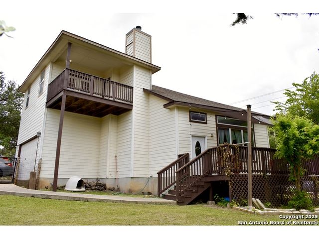 Located just off 281 North near the Blanco and Comal County line, this beautiful 3,100 sq. ft. home sits on nearly an acre with mature trees and a circular driveway. The split-level layout features 3 bedrooms, 2.5 baths, and a spacious primary suite with a walk-in closet, garden tub, and private balcony. Enjoy a new roof installed last year and a pool that stays with the property, perfect for entertaining or relaxing. Experience peaceful Hill Country living just minutes from San Antonio and New Braunfels. Motivated seller-schedule your showing today!