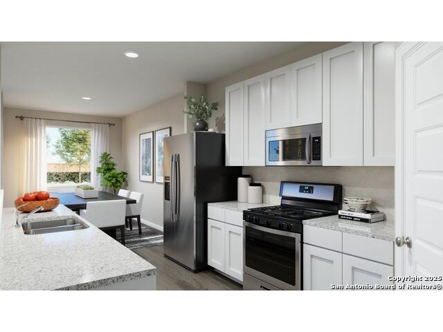 Love where you live in Melissa Ranch in San Antonio, TX! The Emerald floor plan is a spacious 2-story home with 4 bedrooms, 2.5 bathrooms, game room, and a 2-car garage. The first floor offers the perfect entertainment space with vinyl plank flooring and a bar top kitchen overlooking both the dining area and expansive family room! The gourmet kitchen is sure to please with 42-inch cabinets and granite countertops! Upstairs offers a private retreat for all the bedrooms! The Owner's Suite features double sinks with granite countertops, a sizable shower, and a spacious walk-in closet! Don't miss your opportunity to call Melissa Ranch home, schedule a visit today!