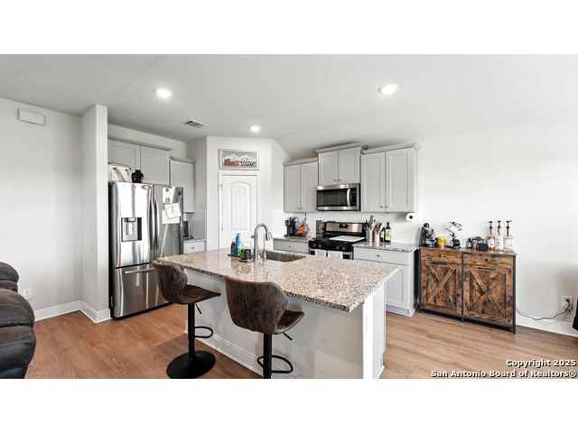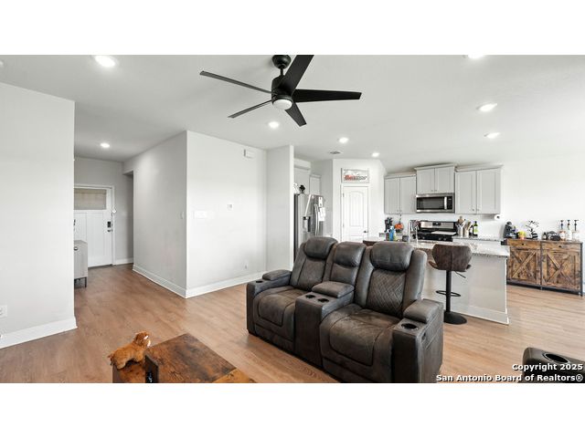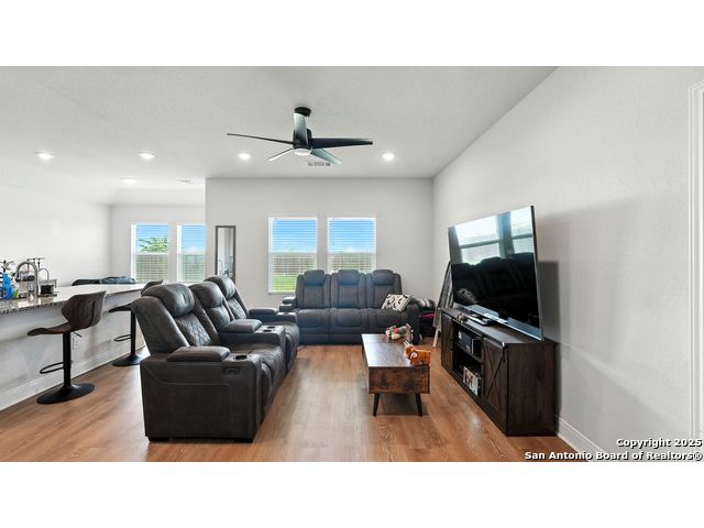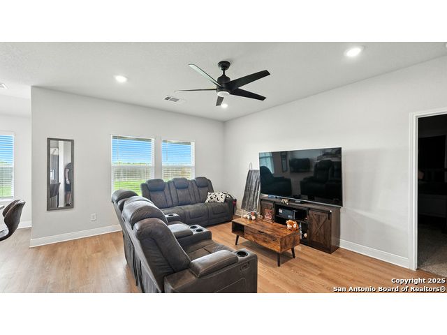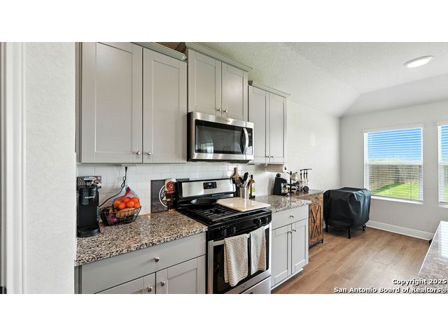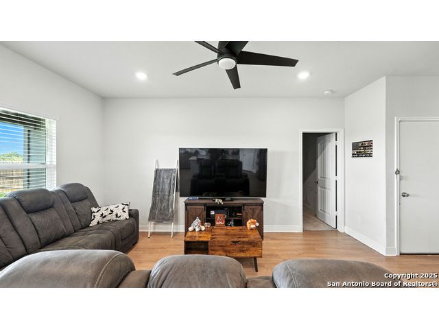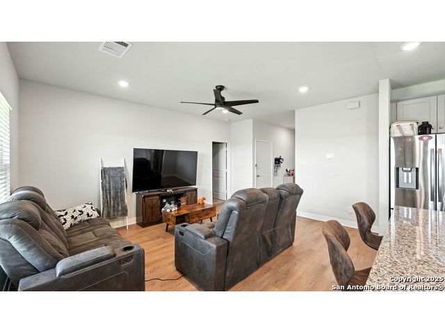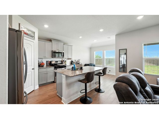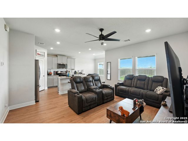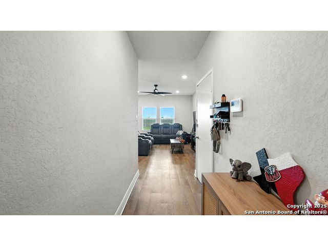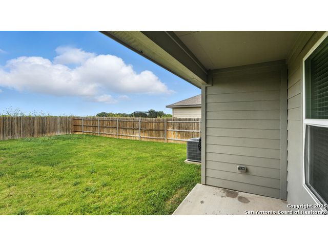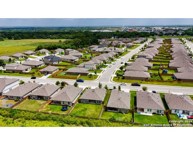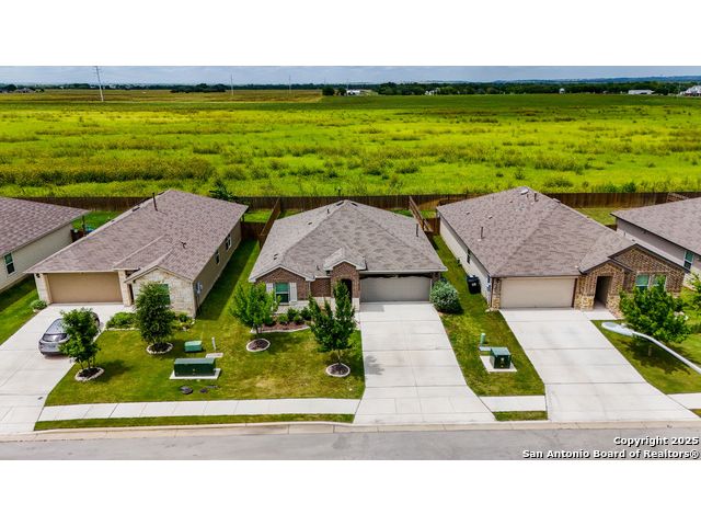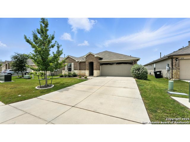 Welcome to 1046 Amble Oak, located in the desirable Navarro Oaks subdivision! This well-maintained 3-bedroom, 2-bath home is just 4 years old and offers a spacious open floor plan perfect for comfortable living and entertaining. The island kitchen features granite countertops, a breakfast bar, and a gas stove-ideal for any home chef. The primary suite offers a walk-in closet with built-in shelving, a double vanity, and a walk-in shower. Secondary bedrooms are spacious, and the second bathroom includes a convenient shower/tub combo. Enjoy your mornings or evenings on the covered patio overlooking the fully fenced backyard, which backs up to an open field with no current neighbors behind-providing added peace and privacy. The home also features an assumable loan, offering potential savings for qualified buyers.Located less than 5 minutes from I-10, with quick access to New Braunfels, San Marcos, and San Antonio-this gem in Navarro ISD checks all the boxes!