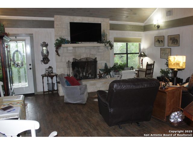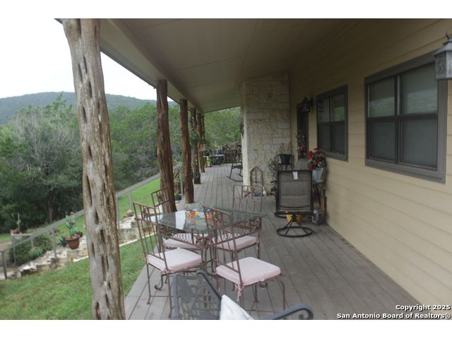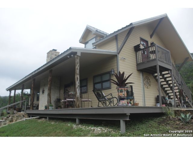 This is a 3 bedroom 3 bath modern residence situated on a 7 acre wooded tract that is non restricted. It features a large living area with a wood burning fireplace, two large bedrooms with private baths downstairs, and a third bedroom with a private bath on the second level. An open pation with a firepit is located in close proximity to a gold fish pond, both of which are located just a few steps down the hill and in plain view from the large covered porch. A detached storage building that could easily be made into a bunk room is located behind the house. The scenery is breathtaking. The silence is deafening. Hunting is permitted. If you are looking for something quiet but only 1.4 miles from Andy's in Concan, call soon. A lot of buyers are looking for something just like this.