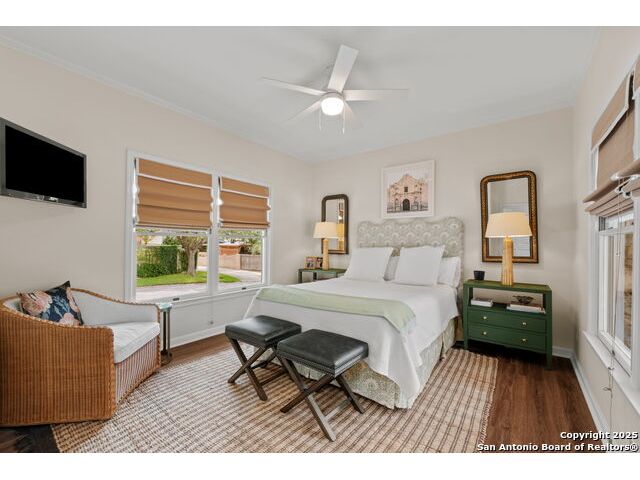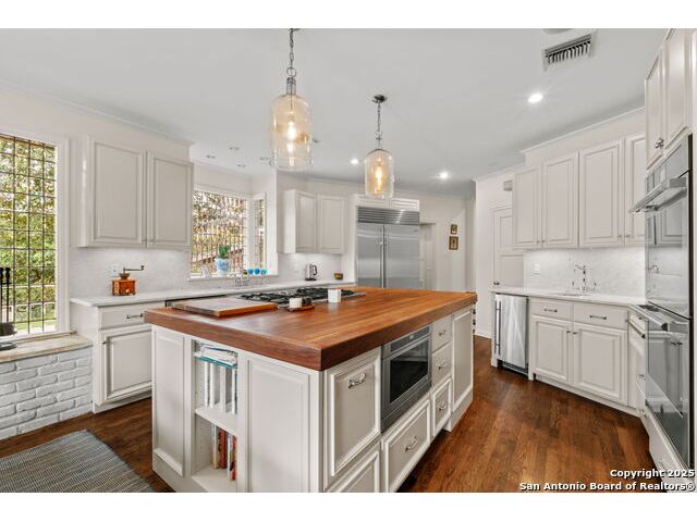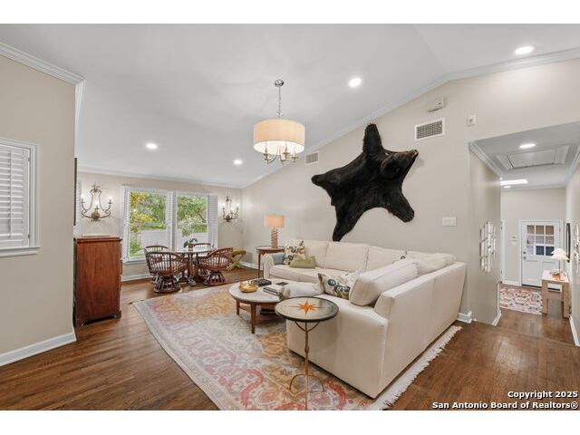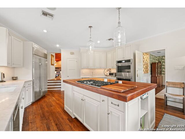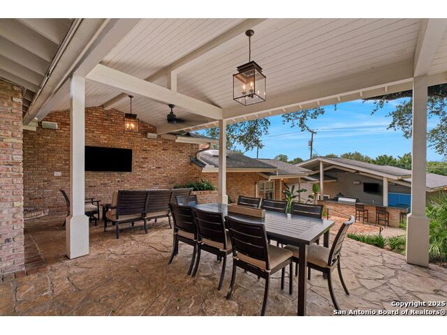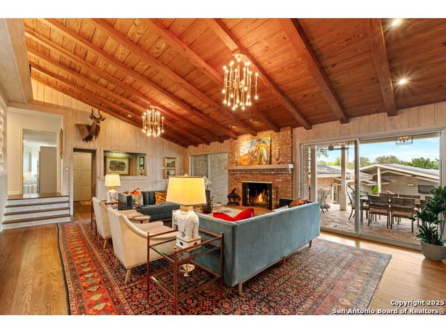 Set on nearly 0.8 acres, this beautifully updated 5,033 sq ft residence offers five bedrooms and four and a half baths in the main house, plus a detached guest quarters with an additional bedroom and full bath. Three generations have cherished this sprawling traditional home, rich with custom details and thoughtfully designed living spaces. Enjoy three spacious living areas, a large formal dining room, and an updated island kitchen featuring a cozy fireplace beside the breakfast table. Every bedroom is generously sized, offering comfort and flexibility for family or guests. The large corner lot is graced with mature trees and multiple outdoor living areas-including a covered patio, full outdoor kitchen, and a firepit surrounded by Adirondack chairs-ideal for relaxing or entertaining. A three-car garage and abundant storage complete this exceptional property.