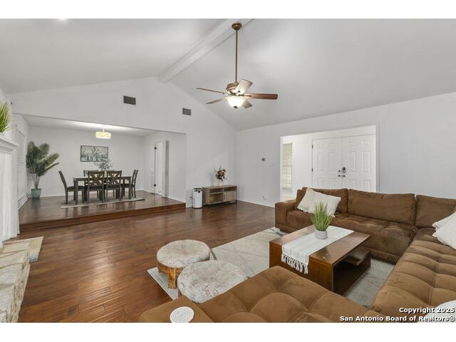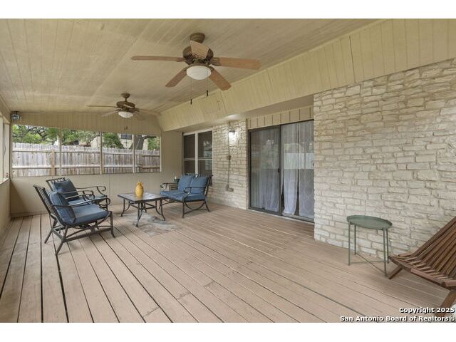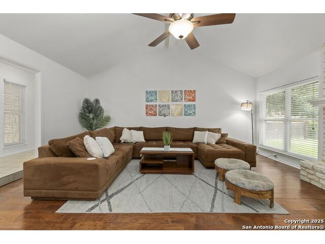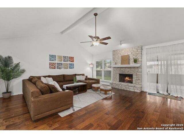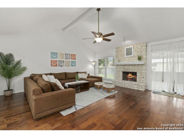 Tucked beneath mature shade trees and a vibrant crepe myrtle, this beautifully maintained 3-bedroom, 2-bath home in Braun Station offers warmth, space, and convenience. Situated on a corner lot in a quiet cul-de-sac, the property greets you with eye-catching curb appeal and a serene setting perfect for everyday living. Step inside to discover an airy open layout with soaring ceilings and a cozy fireplace that anchors the living area. The spacious kitchen features stainless steel appliances, an electric inlay stovetop, generous cabinetry, and plenty of counter space for cooking and gathering. Each bedroom is thoughtfully sized, with the primary suite offering a walk-in closet and an en suite bathroom for added privacy. Enjoy peaceful mornings or evening breezes in the screened-in back patio-an ideal spot for unwinding or hosting guests. With easy access to Bandera Road and Loop 1604, and just minutes from HEB, local dining, and shopping, this home is perfectly positioned for convenience without sacrificing comfort. Come experience a home that truly feels like yours from the moment you arrive.