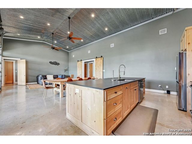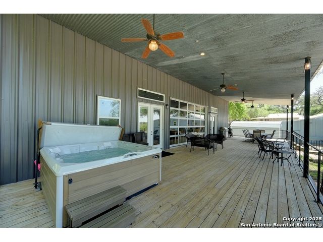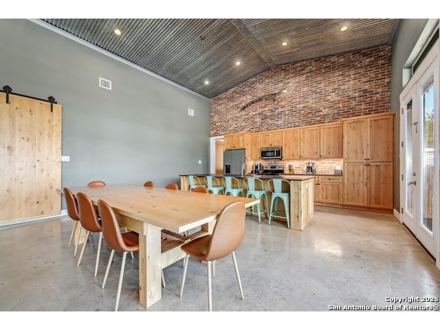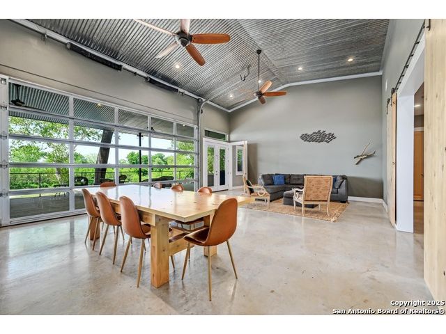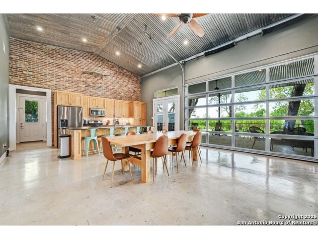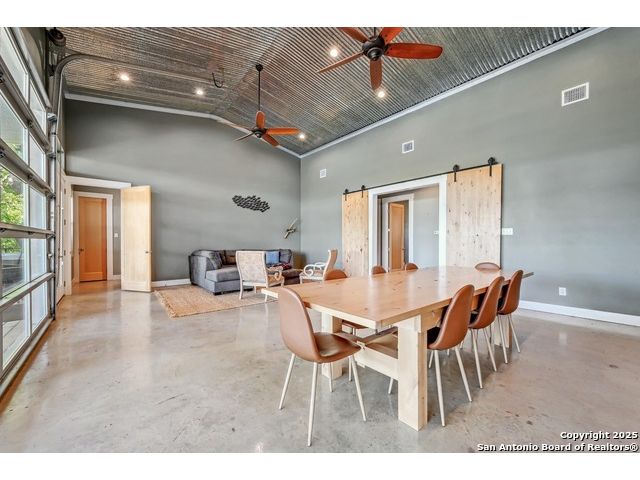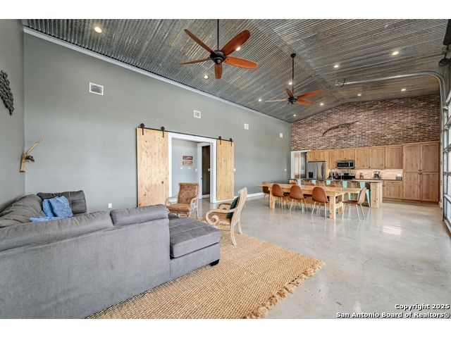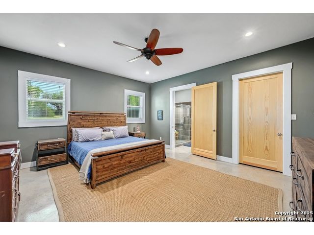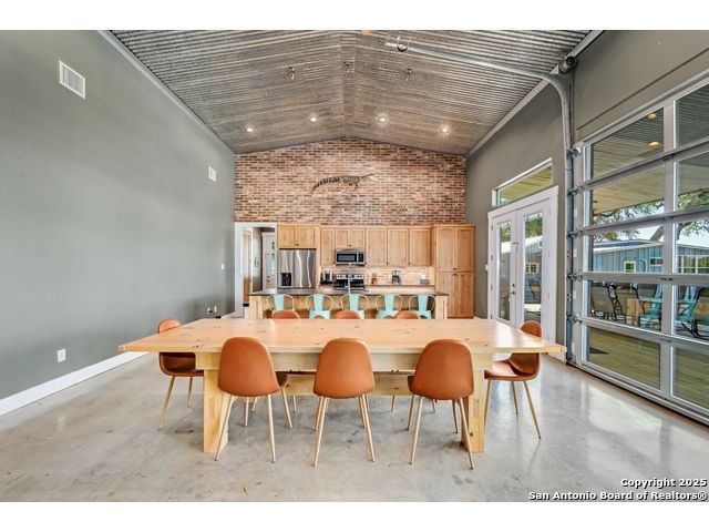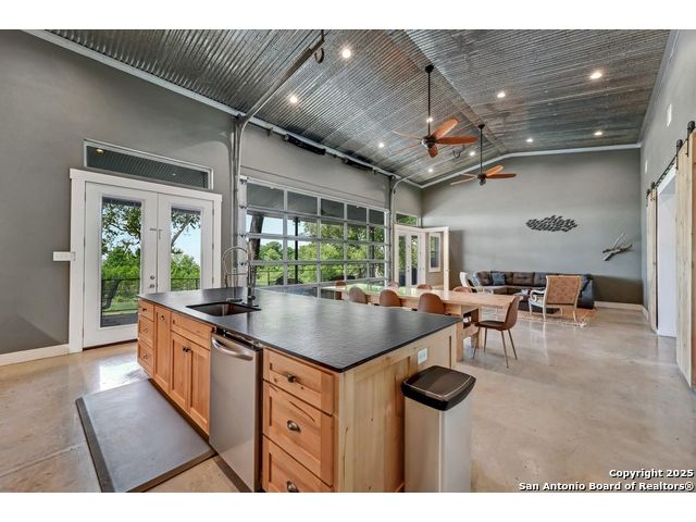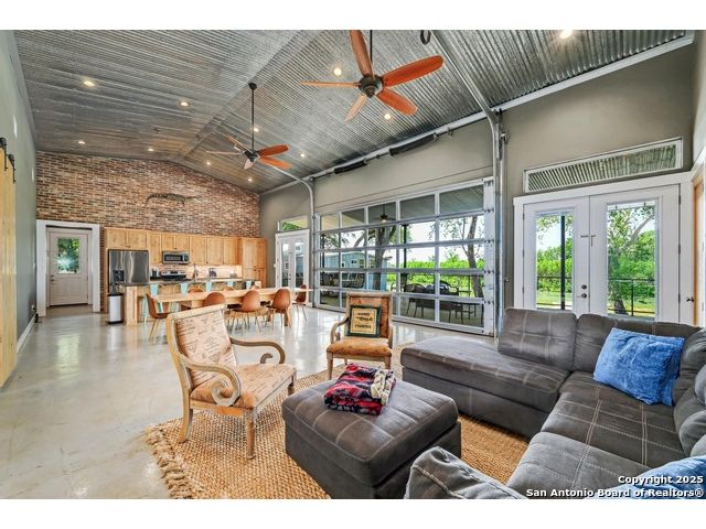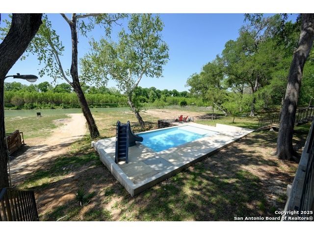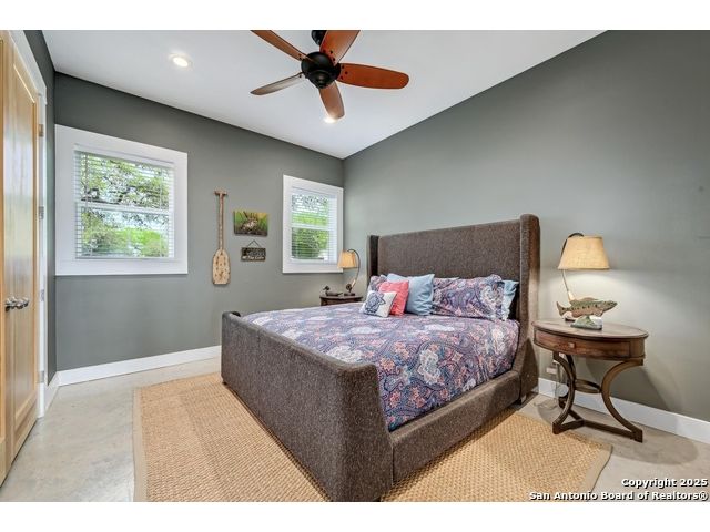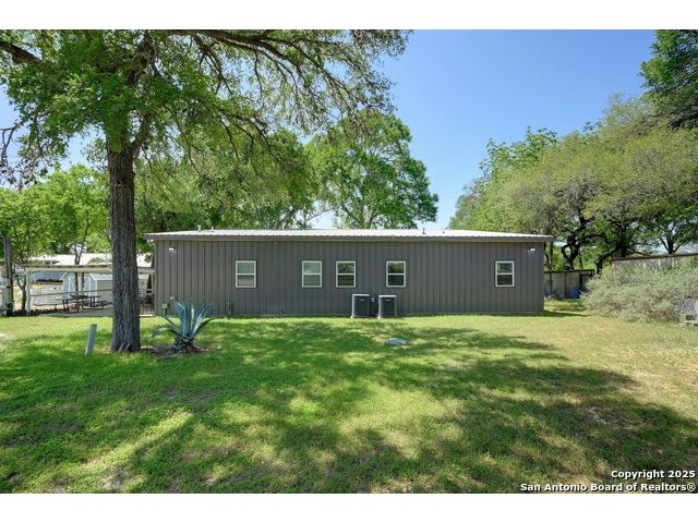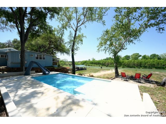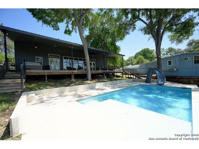 Stunning Contemporary Riverfront Retreat on the Guadalupe River! Discover the pinnacle of Texas riverfront living in this beautifully crafted modern home nestled along the serene banks of the Guadalupe River. With approximately 2,400 sq. ft. of thoughtfully designed living space, this 5-bedroom, 2.5-bath sanctuary seamlessly blends style, comfort, and functionality. Step inside to be greeted by soaring ceilings, expansive windows, and polished concrete floors throughout-no carpet, just sleek, modern lines. The heart of the home is the open-concept kitchen, showcasing custom cabinetry, a generous island perfect for gathering, and a charming brick accent wall that brings warmth and character. The kitchen flows effortlessly into the dining and living areas, creating the ideal space for entertaining or unwinding with loved ones. A dramatic glass partition opens to a spacious back deck that overlooks the river and your own private in-ground pool. Relax in the hot tub, enjoy your morning coffee, or savor a glass of wine as the sun sets over the water-every moment here feels like a getaway. Each of the five bedrooms offers ample storage with walk-in closets, while the primary suite serves as a luxurious retreat complete with a spa-inspired en-suite featuring a double vanity and oversized walk-in shower. Outside, immerse yourself in the natural beauty of the Hill Country. Roast marshmallows around the firepit, launch a kayak from your backyard, or spend lazy afternoons swimming and fishing in the river. Ideally located just 1 hour from Austin and San Antonio, and only 2 hours from Houston, this property is perfect as a full-time residence or a luxurious weekend escape. Come home to the river-where every day feels like a vacation.