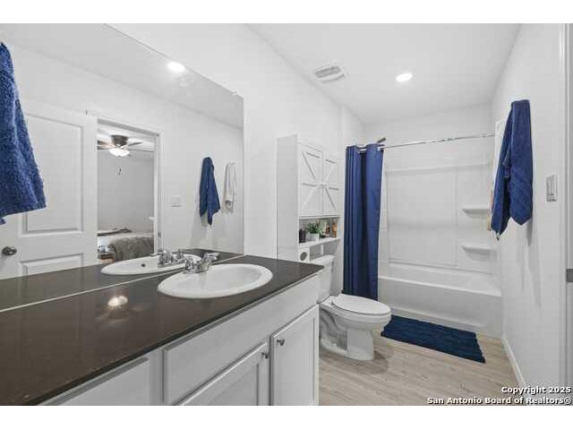 Welcome home! Whether you are looking to enjoy an affordable second home, interested in downsizing or maybe you are a savvy investor, this 2024 home is a terrific option. Enjoy an open floor plan where the living area flows seamlessly into a modern kitchen, perfect for entertaining or quiet evenings at home. Each bedroom offers comfort and privacy with the primary bedroom featuring an en-suite bath and walk in closet. Out back, enjoy a large backyard, perfect for gardening, outdoor dining or simply relaxing under the Texas sky. The current owners have added ceiling fans, extra grass to finish out the back yard, window treatments and a garage door opener. Fiber internet is wired into the home, making this property truly move in ready.