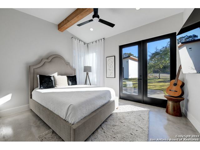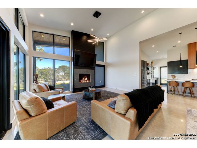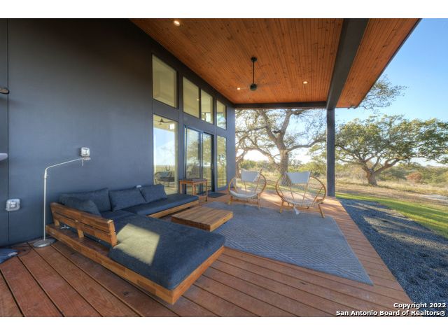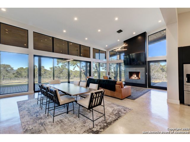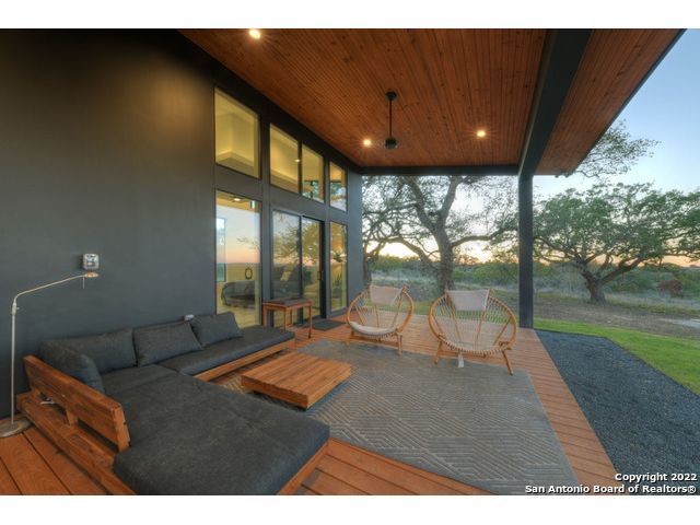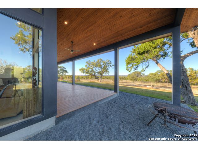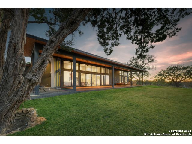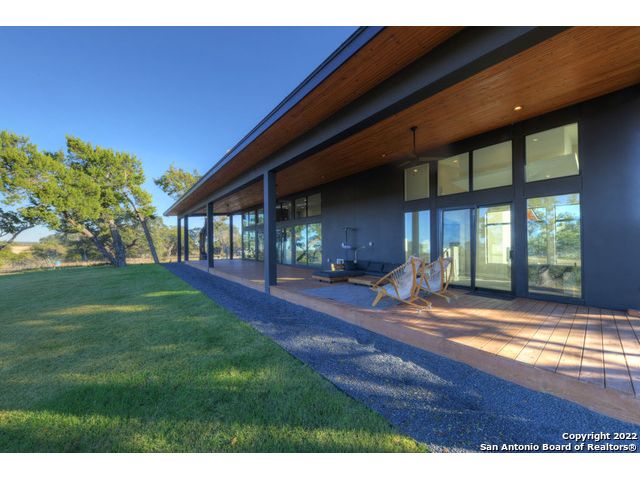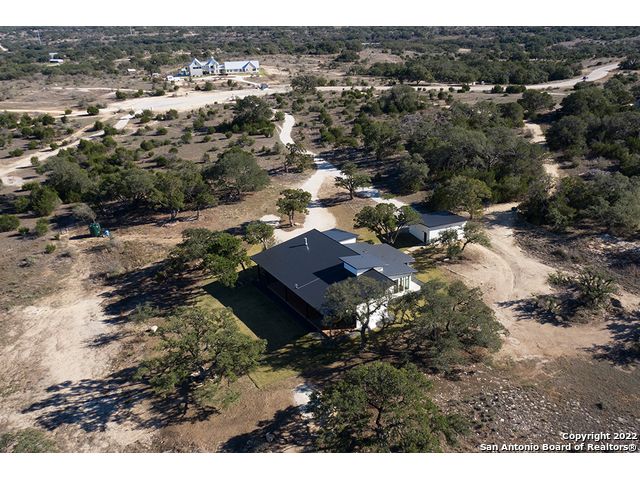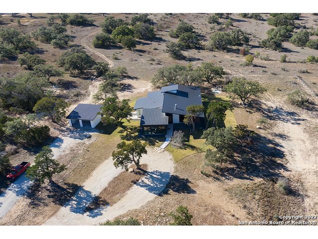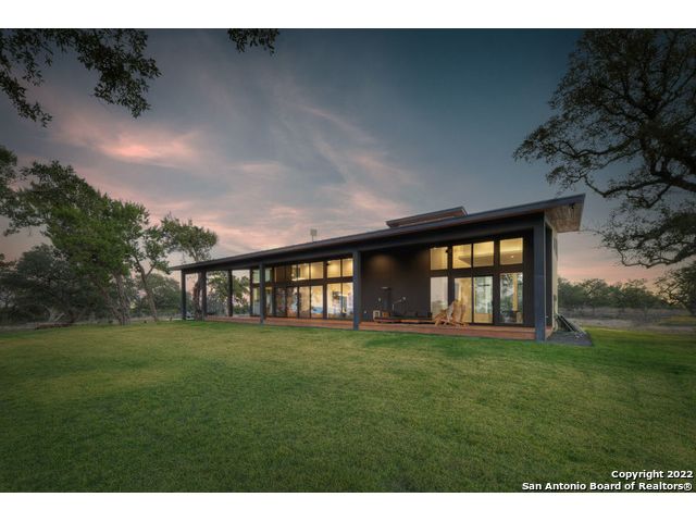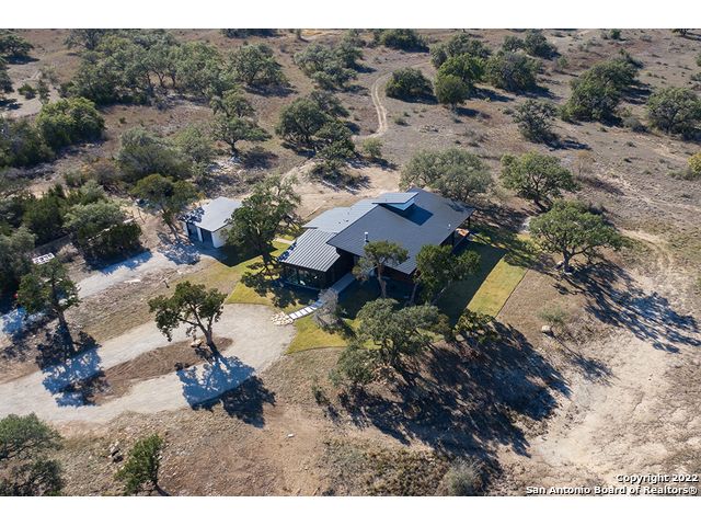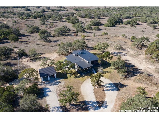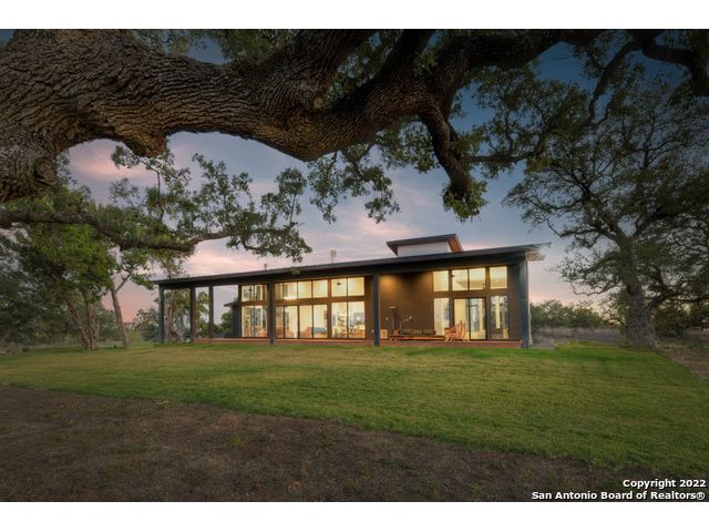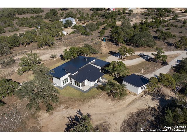 Modern Luxury in the Texas Hill Country Experience the perfect blend of contemporary design and natural beauty in this exceptional custom-built home, set on +/- 10.25 acres in the heart of the Texas Hill Country. Crafted by the acclaimed Dynamic Custom Homes and designed by Oscar Flores Design Studio, this residence showcases impeccable craftsmanship, clean architectural lines, and expansive windows that bring the outdoors in, offering breathtaking views from every room. The open-concept layout creates an inviting space ideal for entertaining and everyday living. The gourmet kitchen is a chef's dream, featuring an oversized island, abundant countertop space, high-end appliances, and a stylish dry bar. The serene primary suite and luxurious en suite bath provide a private retreat, while every room reflects thoughtful attention to detail and spaciousness. Step outside to a generous covered patio with ceiling fans, perfect for enjoying the Texas weather year-round, along with a separate fire pit area for relaxed gatherings. The property also includes a detached two-car garage and benefits from an agricultural exemption on nine acres. This is truly an extraordinary opportunity to own a stunning piece of Texas Hill Country. Schedule your private showing today.