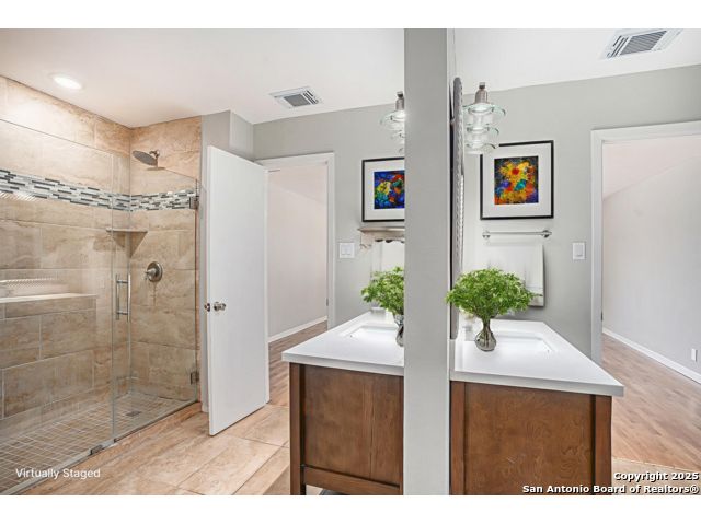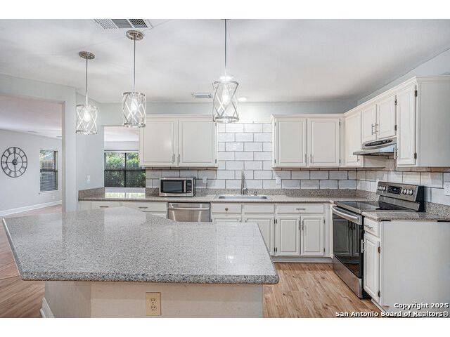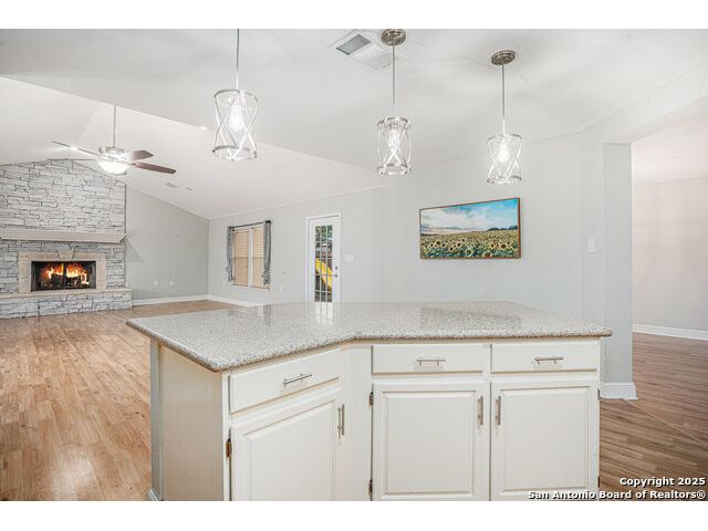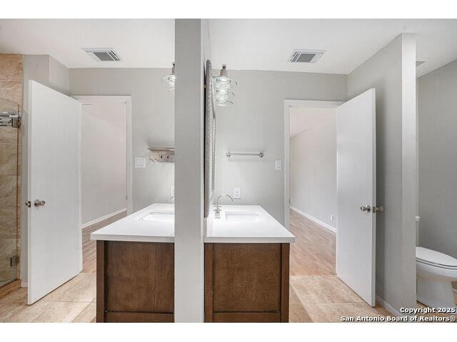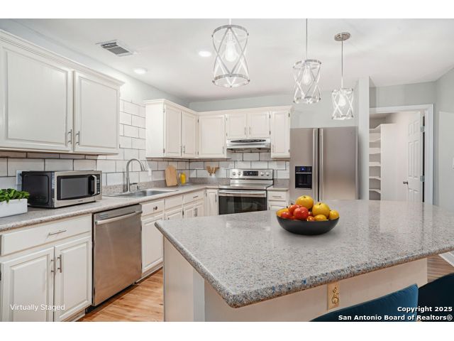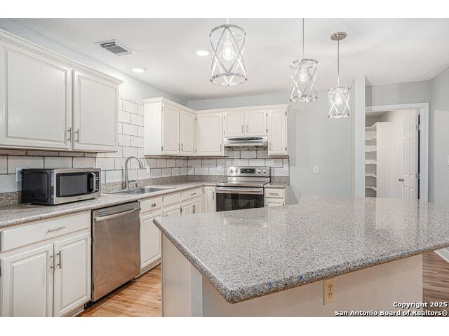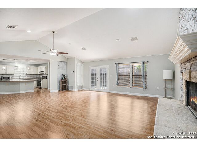 New Price with Preferred Lender Credit *Welcome to The Manor - a spacious and inviting four-bedroom home tucked into a quiet, established neighborhood with quick access to I-10 and 1604. Ideally located near UTSA, the Medical Center and La Cantera, this home offers both comfort and connectivity. *Downstairs, laminate floors flow throughout welcoming you into an open living and dining area with a convenient powder bath for guests. The kitchen is ideal for entertaining, featuring a large island and an expansive walk-in pantry/laundry area. At the back of the home, a second living area offers high ceilings and a beautiful fireplace. *Upstairs, you'll find four generously sized bedrooms and two full bathrooms, including an oversized primary suite with dual walk-in closets, a large walk-in shower, double vanities and a linen closet. Whether you need space for guests, a home office or a hobby room, the layout provides plenty of flexibility. *Outside, enjoy a kid-friendly treehouse/playground, a storage shed and plenty of room to relax. Two new AC units were installed in 2023, and the home is equipped with solar panels that help keep average CPS energy bills under $100 per month. *This home is move-in ready and designed for both comfort and efficiency - don't miss your chance to make it yours!