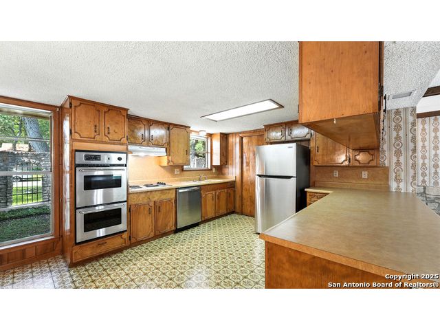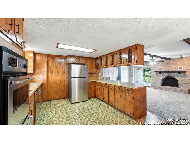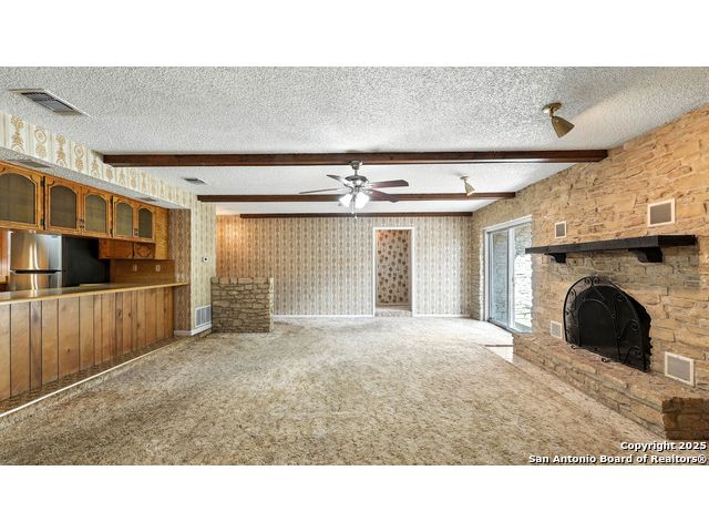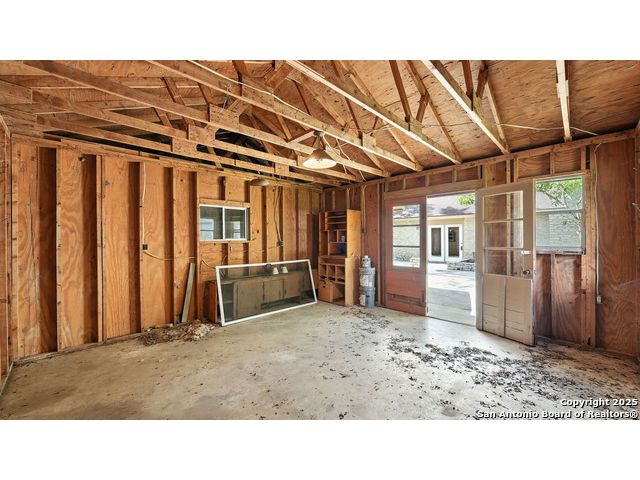 Full of character, this one-family-owned home sits on a spacious corner lot in a quiet, established neighborhood. Inside, you'll find one large living area, including a versatile bonus room with a half bath, perfect for a game room, den, or hobby space. The kitchen is open to the living and dining areas, which makes it perfect for hosting gatherings and entertaining. A cozy wood-burning fireplace anchors the main living area, ideal for relaxing evenings. Enjoy the shade of mature trees, a welcoming front courtyard, and an uncovered back patio with plenty of potential. The property also features a workshop/storage and a two-car, side-entry garage, as well as no HOA.