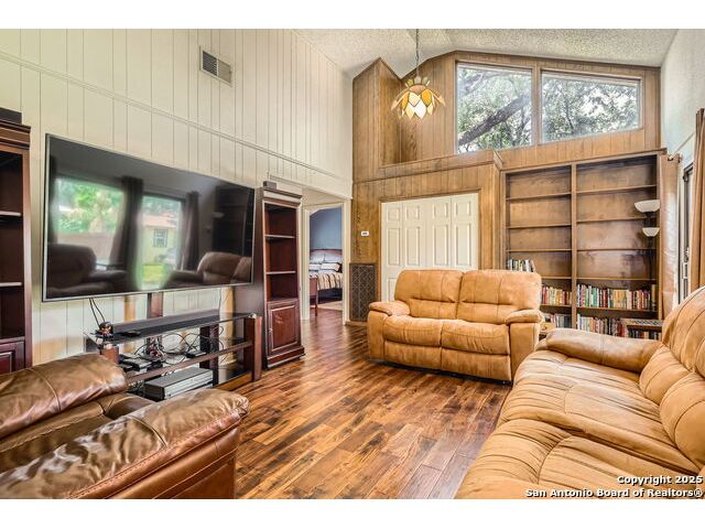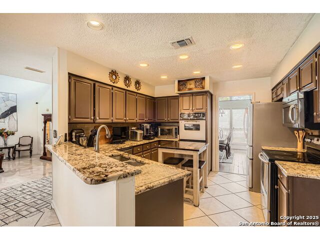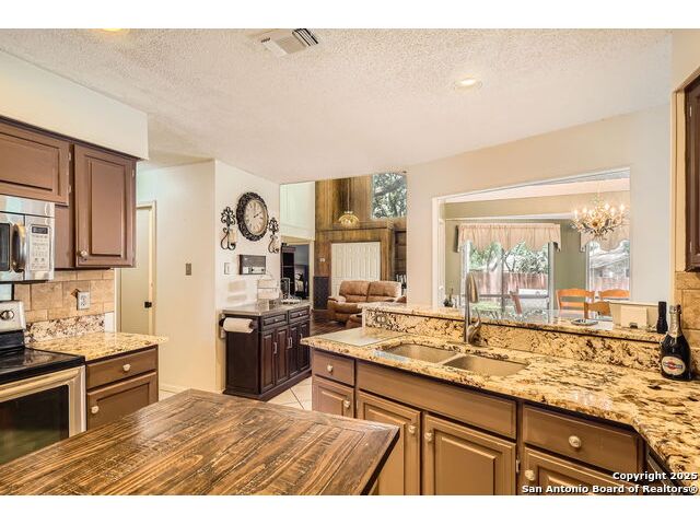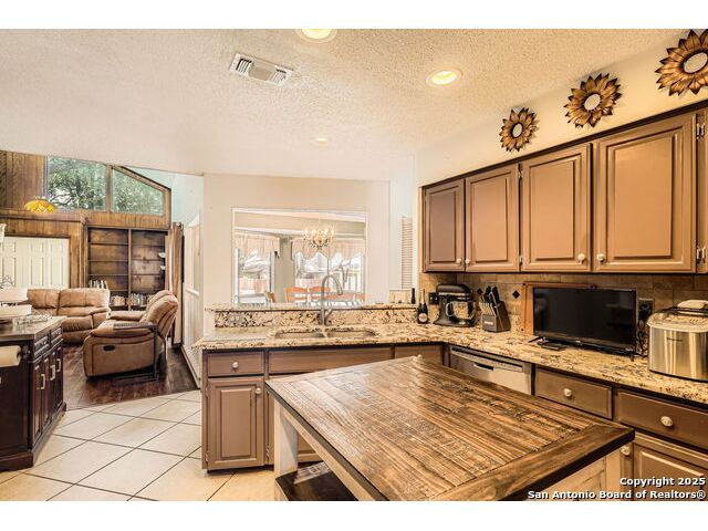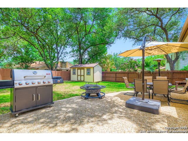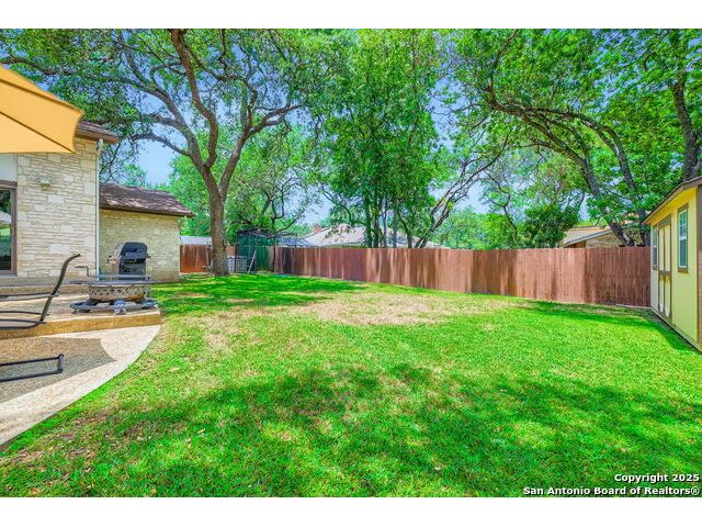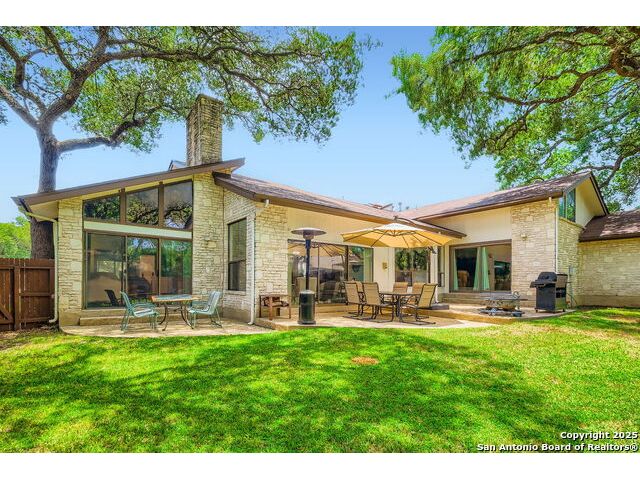 OPEN HOUSE THIS SATURDAY 09/27 from 1pm-4pm! Please drop by!! **Inclusions: Refrigerator in kitchen, Custom drapes in formal dining, all chandeliers, green patio set, outdoor storage.** Nestled in the highly sought-after community of Hunters Creek, this inviting 3-bedroom, 2-bathroom home, built in 1981, offers 2,651 square feet of spacious living on a generous nearly 1/4-acre lot. Perfectly designed for modern lifestyles, this residence boasts an open floorplan bathed in natural light, creating a warm and welcoming atmosphere ideal for both everyday living and entertaining. The heart of the home is its expansive kitchen, seamlessly flowing into two distinct living areas, fostering effortless connectivity for gatherings with family and friends. Both living spaces feature glass sliding doors that open to a large patio, extending your living area outdoors to a sprawling backyard-perfect for barbecues, play, or simply relaxing in your private oasis. Thoughtfully designed, the home's layout maximizes space and functionality, with abundant windows that enhance the airy ambiance. The sizable lot provides ample room for gardening, recreation, or future enhancements, all within the serene and prestigious Hunters Creek community, known for its tree-lined streets, excellent schools, and proximity to Houston's finest dining, shopping, and entertainment. This move-in-ready gem combines timeless charm with a floorplan tailored for entertaining, making it an exceptional opportunity for families, professionals, or anyone seeking a vibrant yet tranquil lifestyle. Don't miss your chance to own in one of San Antonio's most coveted neighborhoods!