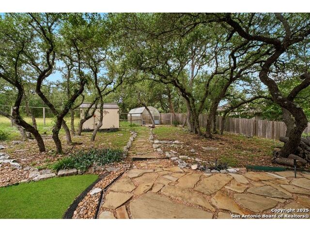 A rare opportunity to live in the coveted neighborhood of The Overlook in Stone Oak! This spacious 4-bedroom, 3.5-bathroom home offers 3 versatile living areas, soaring ceilings, and sits on a beautiful 1-acre lot filled with mature trees. Enjoy the added perk of a greenhouse, perfect for garden enthusiasts. Metal Roof was replaced in 2024. Located within highly acclaimed school boundaries and just minutes from top-tier shopping and dining-this property blends privacy, space, and convenience in one of San Antonio's most desirable communities.