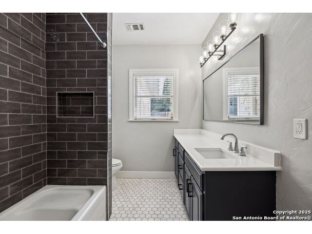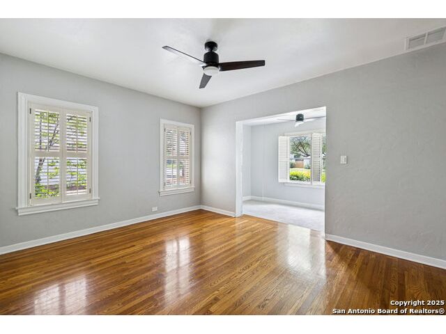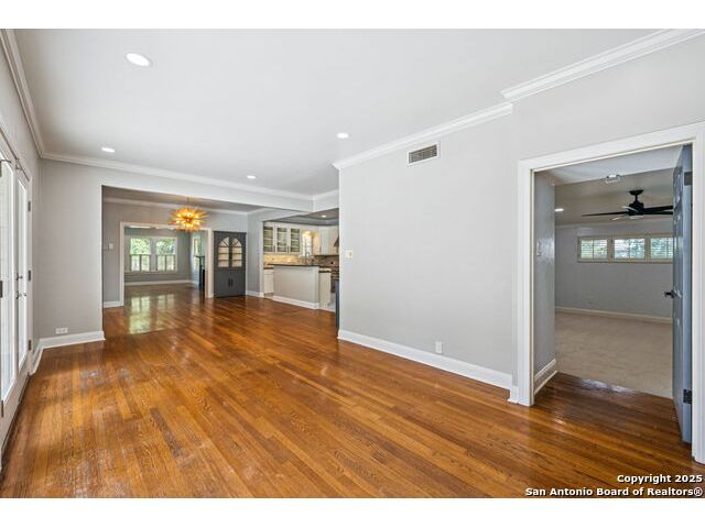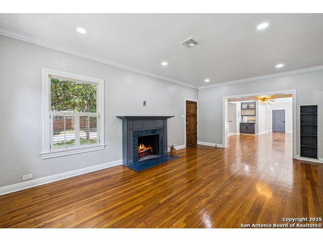 Located at the intersection of Alamo Heights Blvd and Nacogdoches, this move-in ready 3-bedroom, 3-bath home sits on a spacious .27-acre corner lot beneath mature oak trees in the heart of Alamo Heights. Offering single-story living with no interior stairs, the home is within walking distance to the Alamo Heights Little League fields-as well as the neighborhood pool and dog park, adding lifestyle value to an already desirable address. This thoughtfully updated home features two inviting living areas and an open-concept kitchen designed for entertaining and everyday comfort. Renovated in 2021, bathrooms and kitchen enhancements blend style with function, while the large primary suite includes a walk-in closet and private bath. A bonus space off a secondary bedroom is ideal for a home office, workout area, or cozy retreat. Step outside to a sparkling pool and low-maintenance backyard, complete with a residential ramp for wheelchair accessibility and a two-car carport for added convenience. With charming curb appeal, a manicured lawn, and established landscaping, this property offers a rare blend of charm, function, and location