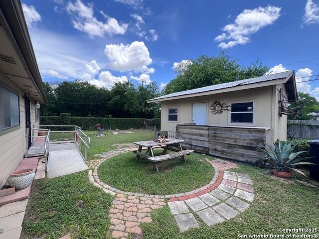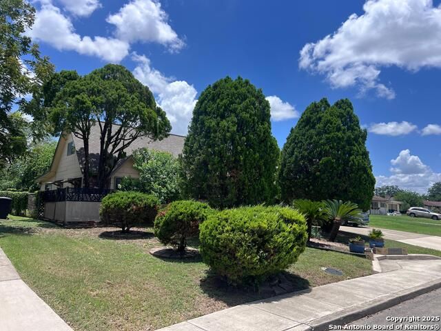 Charming Two-story Cottage in Secluded Meadowview North. Perfectly situated for convenience, this home is just moments from Fort Sam Houston JBSA, the San Antonio Medical Center JBSA, The Pearl, and all the vibrant attractions of downtown San Antonio, including the Frost Bank Center & Freeman Coliseum. Homes in this neighborhood are rarely available, making this a unique opportunity to settle into one of San Antonio's most peaceful and charming communities. Nature enthusiasts will love the neighborhood's access to Pletz County Park, which features walking and hiking trails along Salado Creek, playgrounds, tennis and basketball courts, pickleball courts, fishing areas, picnic spots, barbecue areas, and more. It's the perfect blend of urban convenience and outdoor serenity. Nestled among mature trees, this charming two-story cottage offers plenty of curb appeal and a tranquil garden area ideal for relaxation or meditation. The home features a covered carport with parking for two-four cars and a spacious interior that offers versatility and charm. Inside, you'll find two living areas, a formal dining room, and a large kitchen, perfect for entertaining or everyday living. The highlight is the expansive den, which can be transformed into a party room, man cave, or creative space to fit your lifestyle. The layout is thoughtfully designed with two bedrooms, a study/office, a full bathroom, and a laundry/utility room all on the first floor. Upstairs, there are two additional bedrooms and another full bathroom. The fully fenced backyard includes a large storage shed and plenty of room to create your dream outdoor oasis-whether that's a deck, garden, or play area. Meadowview North's historical character and peaceful ambiance make it a truly special place to call home. Don't miss this opportunity to own a home in a neighborhood where re-zoning has already been approved and shops, retail, entertainment are all slated to be nearby. Talk about a great opportunity!