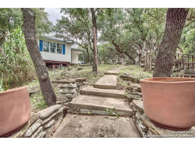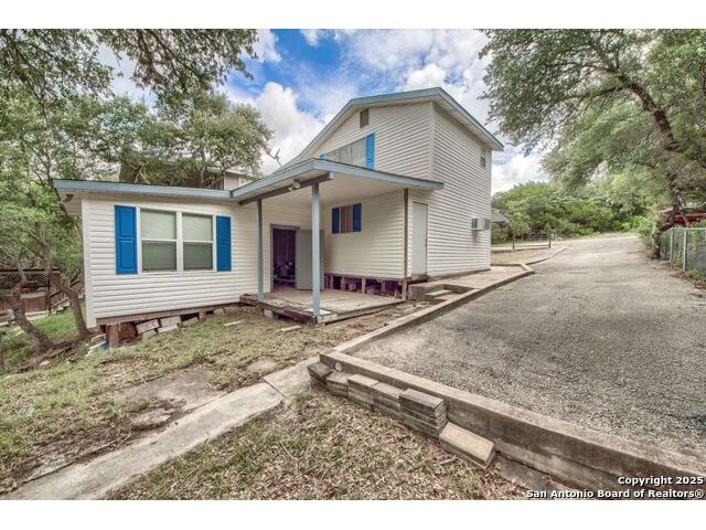***WATER FRONT LOT ***Now is the time to buy! Currently, this well maintained home is a one bedroom. The plan was to divide the large spacious bedroom upstairs into a two bedroom but the owner loves it the way it is. Three beds will fit comfortably in this large room or even a pullout sofa. Whatever your needs are. Also, downstairs the plan was to finish the primary bedroom. The seller is leaving the sheetrock that was purchased for this room. There is a door that leads out to a covered patio/deck, it's so peaceful enjoy your coffee in the morning and wine in the evening. Nice open kitchen with attractive honey colored cabinets, stove and refrigerator stay. The downstairs bathroom has a great walk-in shower, you will love all the space. The are two driveways to accommodate the parking for your family and friends for all your entertaining! Please be careful walking in the back some of the stepping stones and deck boards are loose. Approximately 22 miles from Bandera Tx. Visit the Bandera Brewery, City Park and the Natural History Museum. This property is a must see! Welcome Home!