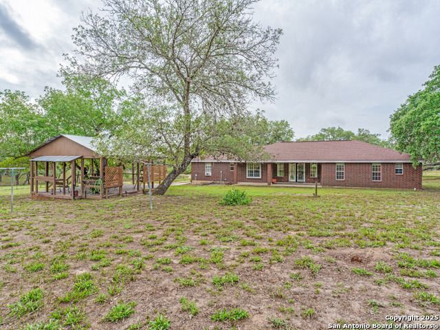 Welcome to your peaceful country oasis home. Nestled among mature trees on a scenic 5.38-acre lot, this charming 3-bedroom, 2-bath home offers the perfect balance of tranquility, privacy, and everyday practicality. Positioned just minutes from the quaint charm of Floresville and an easy drive to the vibrant city life of San Antonio, it's a location that gives you room to breathe-without sacrificing convenience. this home perfectly blends peace, privacy, and functionality. Step onto the expansive covered patio-ideal for lively gatherings, evening dancing, or quiet moments under the glowing Texas moonlight. It's a space where memories are made. Whether you're a craftsman or simply in need of extra storage, the separate workshop provides the flexibility and space you need to pursue your projects or stow away your gear. With ample space for RVs, boats, and outdoor toys, you'll never have to compromise on convenience or adventure. This property is more than a home-it's your personal retreat with boundless potential. Come see what makes this slice of Texas truly special