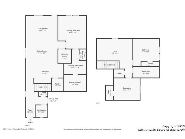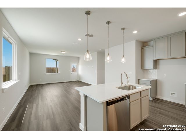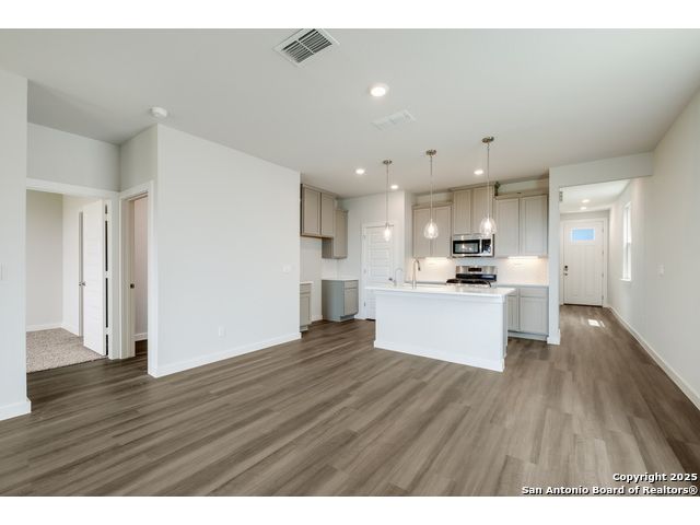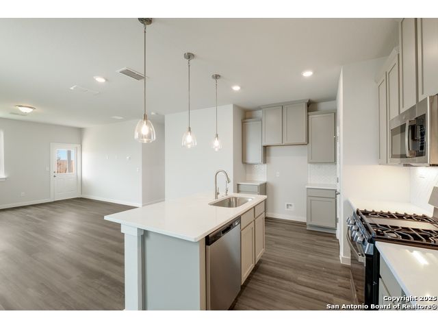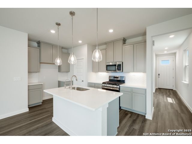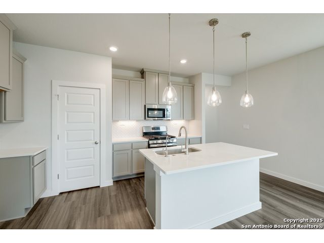 Welcome to 14736 Sweet Clover, a beautifully designed home in the charming Talley Fields community in San Antonio's fast-growing Far Northwest. This open-concept floorplan is crafted to fit a variety of lifestyles, featuring an upgraded kitchen at the heart of the home with gas appliances, a spacious pantry, dedicated dining area, and a large island perfect for both meal prep and gathering. Designed with comfort in mind, the layout offers all secondary bedrooms upstairs for added privacy, while the primary suite remains conveniently located on the main level. A versatile loft upstairs provides the perfect space for a home office, media room, or play area. The main-floor primary suite serves as a relaxing retreat, complete with a spa-inspired walk-in shower, dual vanities, and a generous walk-in closet. Just outside the suite, the laundry room offers easy day-to-day convenience. This home is ideally located near top-rated Medina ISD schools, major employers, Lackland AFB, shopping, dining, and entertainment. Builder incentives are available, including interest rate buy-downs and closing cost assistance with preferred lenders. VA buyers may even qualify to purchase with as little as one dollar out of pocket. Prices, features, and options are subject to change. Square footage and dimensions are approximate and may vary by elevation.
