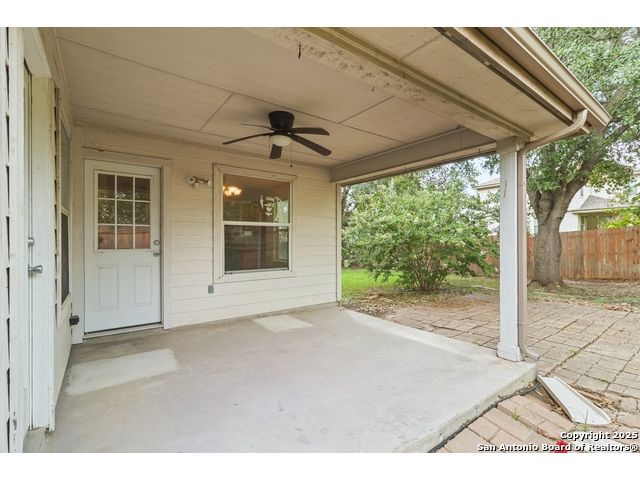 Welcome to 5402 Stormy Trail, a beautifully maintained 3-bedroom, 2-bath home offering nearly 2,000 sq. ft. of comfortable living space in a desirable NE San Antonio neighborhood. This single-story gem features tile and wood flooring throughout, no carpet, and a spacious open layout. The kitchen boasts stainless steel appliances and ample counter space, while the large living room and separate dining area make entertaining a breeze. The private backyard offers mature shade trees and a paved patio-perfect for outdoor relaxation. Conveniently located near schools, shopping, and major highways. Click the Virtual Tour link to view the 3D walkthrough. Discounted rate options and no lender fee future refinancing may be available for qualified buyers of this home.