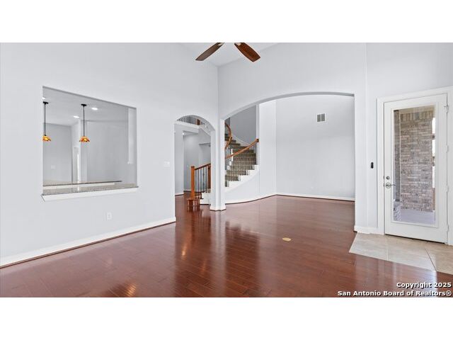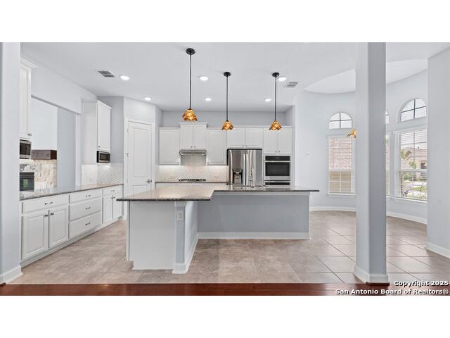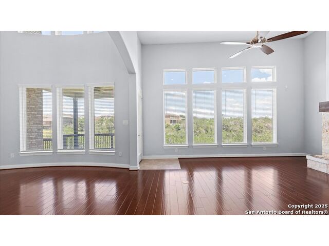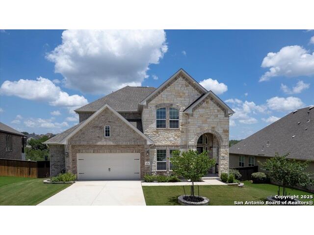 This gorgeous two-story home in New Braunfels offers the perfect blend of elegance and comfort. Featuring 4 spacious bedrooms and 3.5 baths, this home sits on a premium greenbelt lot, providing beautiful views from the backyard. Step inside to find warm wood floors, soaring ceilings, and a grand staircase that makes a stunning first impression. The upgraded kitchen is a chef's dream with high-end finishes, ample cabinet space, and a large island-perfect for entertaining or everyday living. Retreat to the luxurious primary suite with a spa-like bath, while upstairs, you'll find generously sized secondary bedrooms and additional living space for work or play. With a functional layout, quality upgrades throughout, and breathtaking natural views, this home offers both style and serenity in one of New Braunfels' most desirable neighborhoods. Don't miss this rare find!