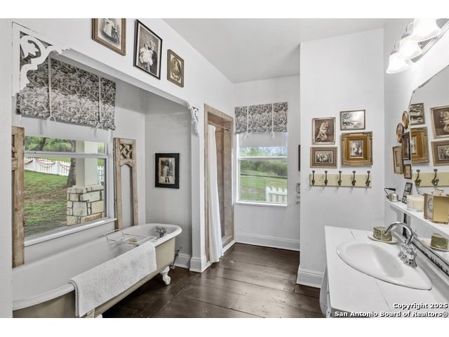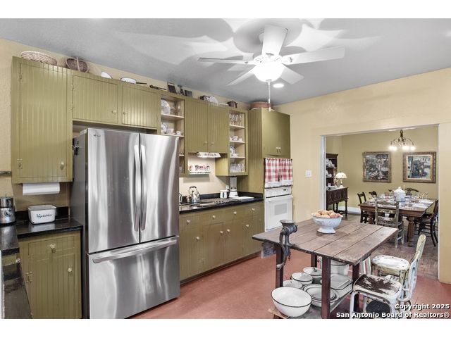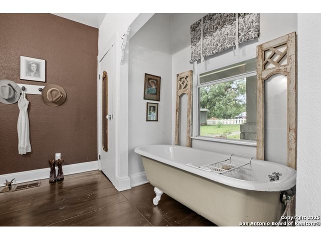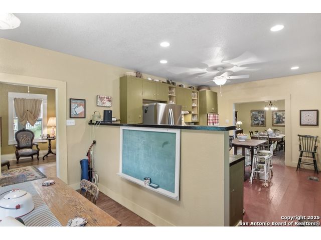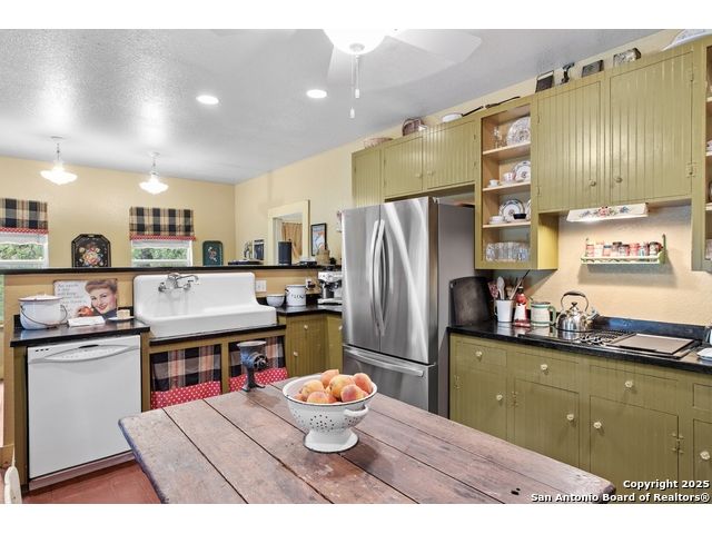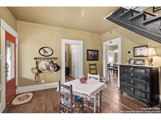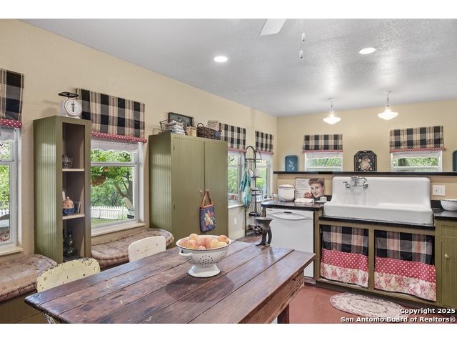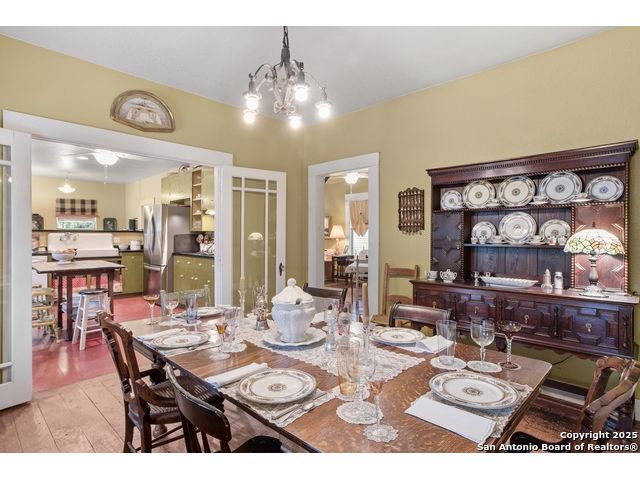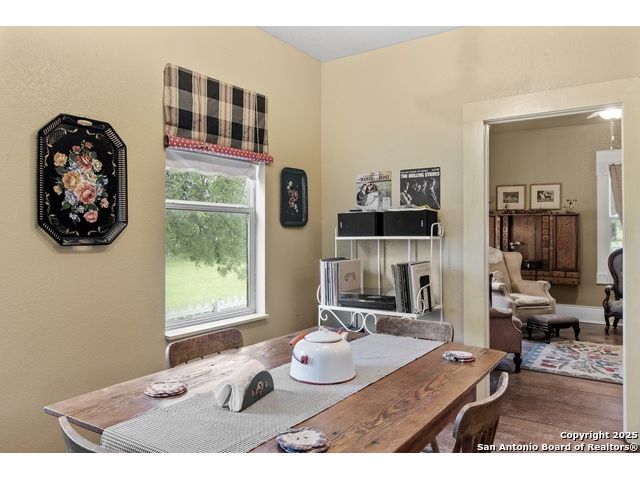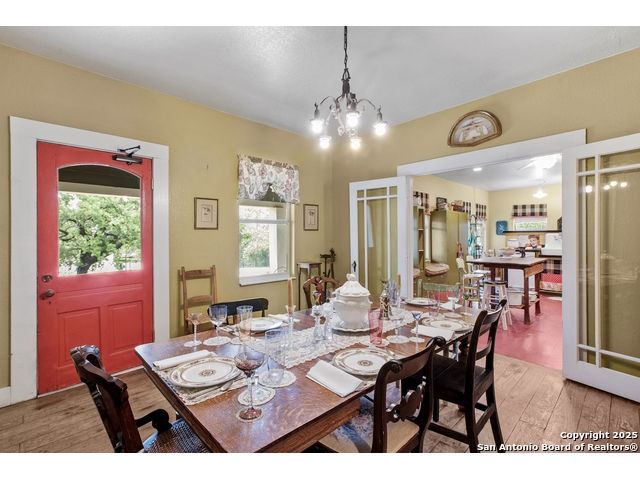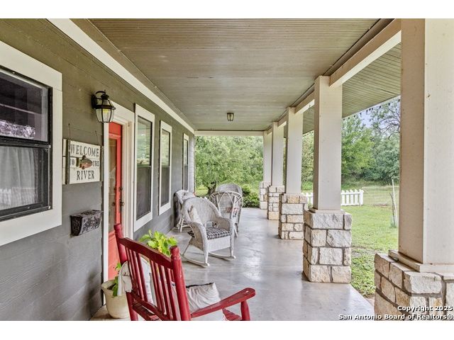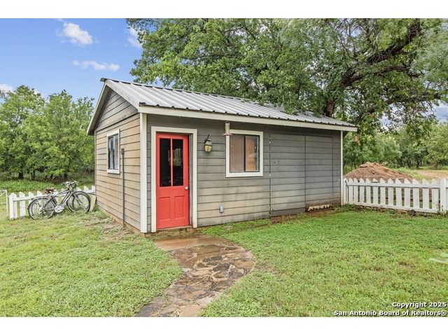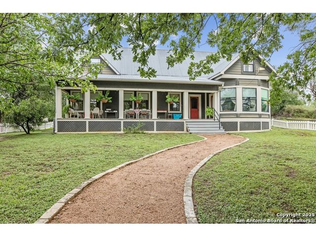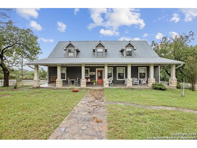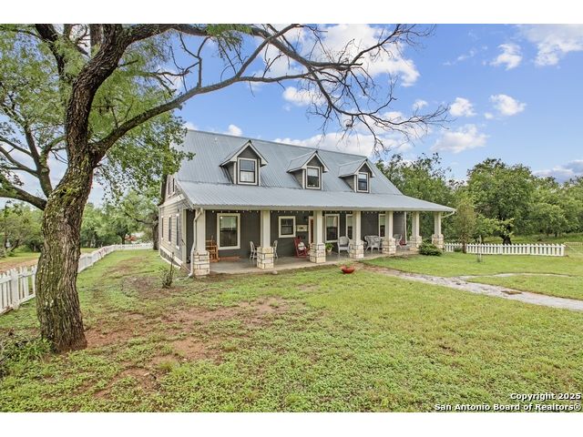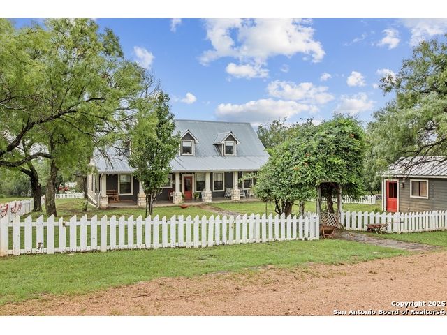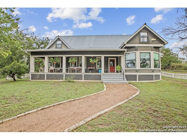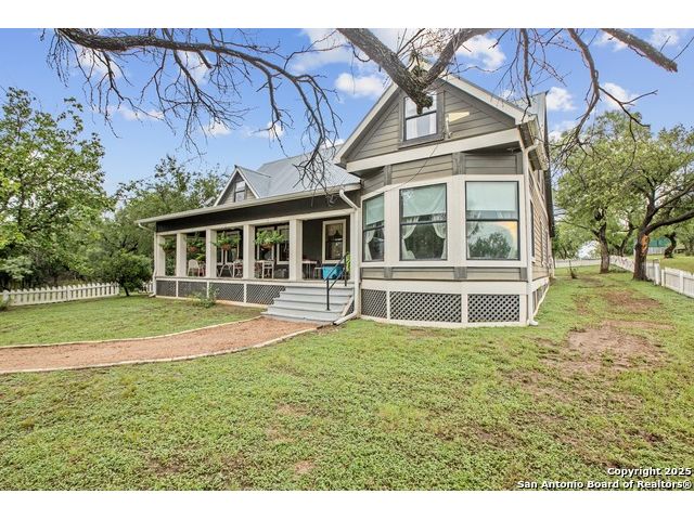 Step into the timeless charm of this beautifully restored late 1800s farmhouse perfectly situated on over 5 unrestricted acres along the picturesque Llano River. This spacious 4-bedroom, 2.5-bath home offers approximately 3,012 square feet of inviting living space and blends historic character with modern comforts. Inside, you'll find long-leaf pine and hardwood flooring, high ceilings, walk-in closets, and an abundance of natural light. The thoughtfully designed layout features a formal dining and living room, a cozy breakfast area, an office nook, a generous upstairs storage closet, and a luxurious primary suite located on the main level. Relax on expansive front and back covered porches, perfect for enjoying the peaceful Hill Country setting. The gently sloping backyard leads to a wide stretch of open water river frontage, complete with beach access for swimming, kayaking, or simply enjoying the serene views. The property also includes a greenhouse, a water storage tank, a detached storage building for water toys or tools, a gazebo, and a fire pit perfect for entertaining. It is fully perimeter fenced for privacy and peace of mind, and the improvements are located outside of the floodplain. Originally relocated from downtown Llano, this farmhouse retains its historic charm while offering the freedom of country living. Whether you're seeking a full time residence, a weekend getaway, or a short term rental opportunity, this riverside retreat offers unmatched character and tranquility. Some furnishings are available for purchase. Don't miss your chance to own this one of a kind Hill Country haven. Schedule your private showing.