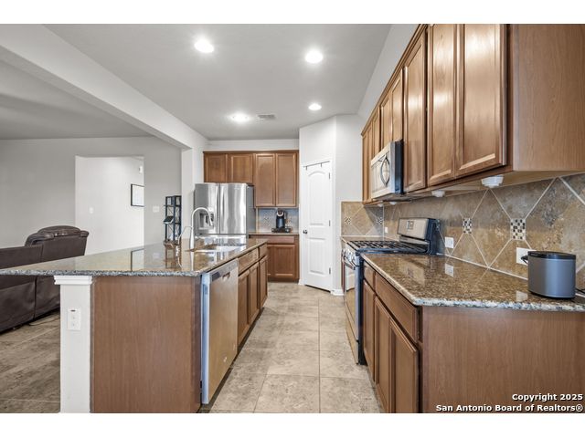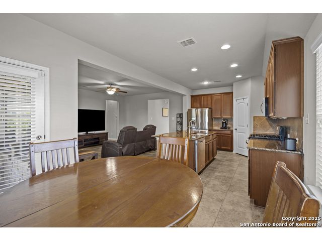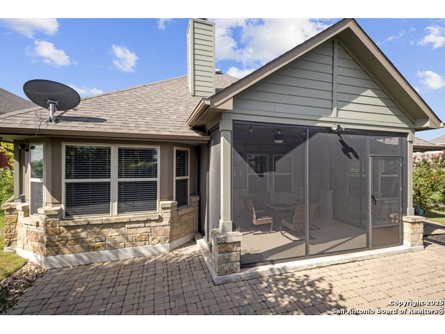 Welcome to 12017 Vignette-a stunning 4 bedroom 3 bathroom home offering 2,232 square feet of thoughtfully designed living space in the award winning Crossvine master planned community. The open concept design seamlessly integrates the living room and island kitchen, featuring granite countertops and stainless steel appliances, ideal for family gatherings and entertaining guests. The expansive primary suite provides abundant natural light, a spa like en suite with double vanity, large walk in shower, and a spacious walk in closet. Each of the additional well appointed bedrooms offers comfort and convenience, complemented by two more full baths. Outdoor living shines with a screened in covered patio overlooking a backyard rich with lush trees and foliage, perfect for morning coffee or evening relaxation. A generous shed offers versatile extra storage. Situated in Crossvine, this home grants access to superb community amenities including a resort style clubhouse and pool, meandering ponds, and walking and jogging trails woven throughout the landscaped greenbelts. Located within the respected Schertz Cibolo Universal City ISD, this property combines quality schooling with a vibrant active neighborhood lifestyle. Ideal for families, professionals, and anyone seeking a blend of modern comforts, serene outdoor space, and access to community focused amenities. Discover the best of Schertz living at 12017 Vignette. Schedule your private tour today!
