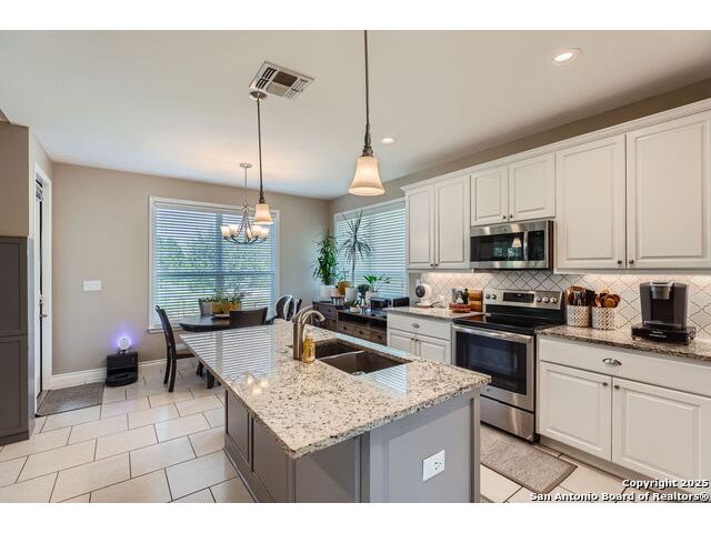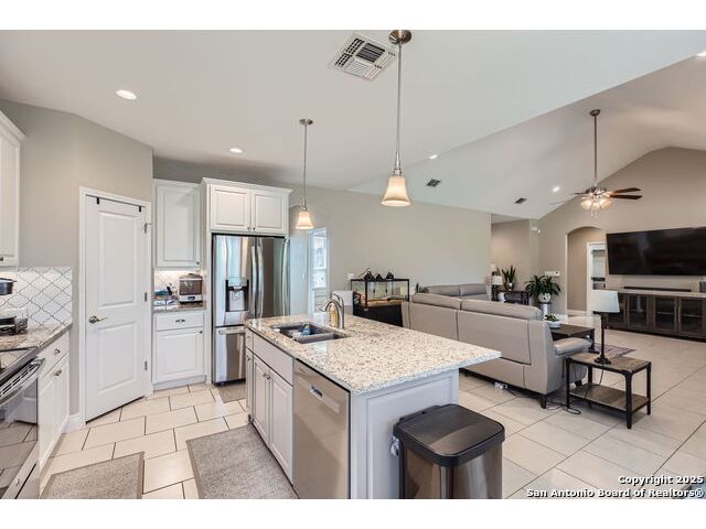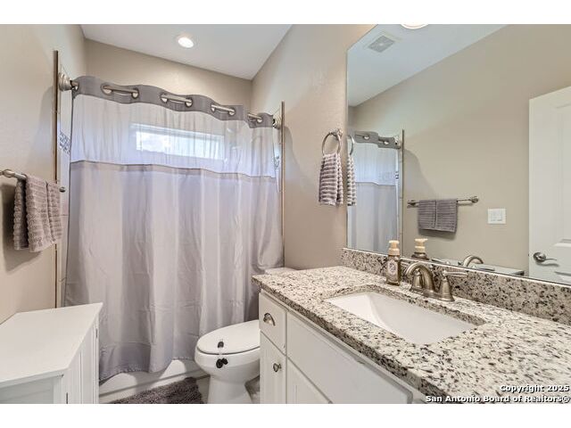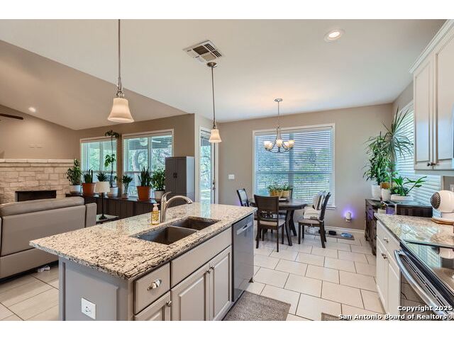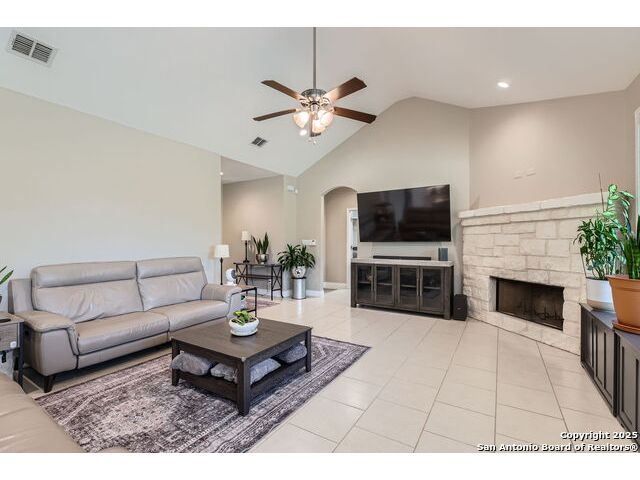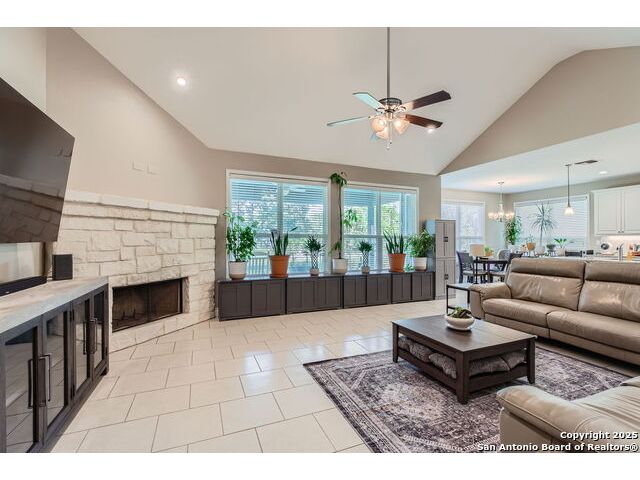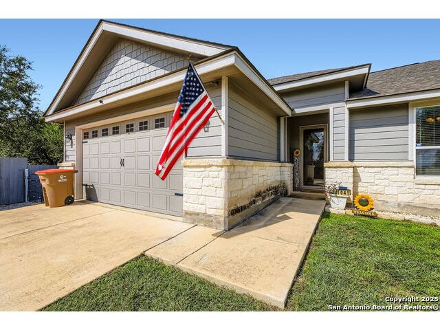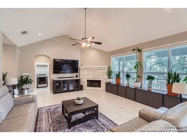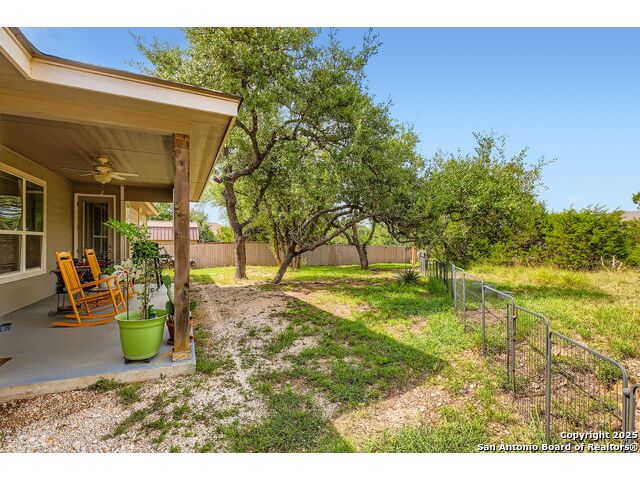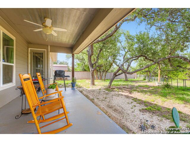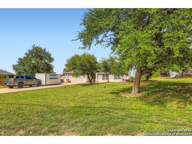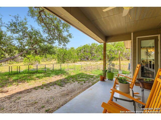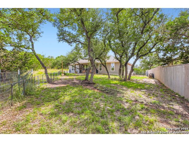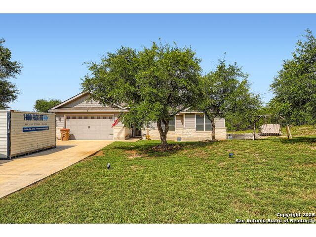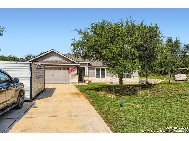 Experience Hill Country living at its finest with this stunning home on a spacious 0.50-acre lot in the highly desirable Ranch Del Lago subdivision. From the moment you step inside, you're welcomed by an open floor plan filled with natural light, soaring ceilings, and a striking stone fireplace that anchors the living space. The kitchen is designed to impress, featuring granite countertops, a large walk-in pantry, tile backsplash, center island, and a convenient breakfast bar-perfect for both everyday living and entertaining. Step outside to a peaceful, tree-lined backyard with a covered patio that's ideal for relaxing or hosting gatherings. A privacy fence on one side and mature trees create a tranquil, secluded atmosphere. The garage is a standout with epoxy flooring and built-in shelving for added storage and functionality. Located just north of Canyon Lake and a short drive from the charm and attractions of Wimberley and New Braunfels, this home offers the perfect blend of comfort, style, and convenience. Lastly it also includes a seperate she/he shed with A/C, and heat. The driveway can easily fit a boat. Current interest rate may be assumable.
