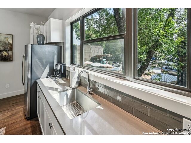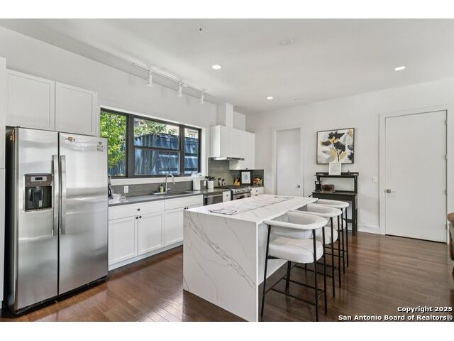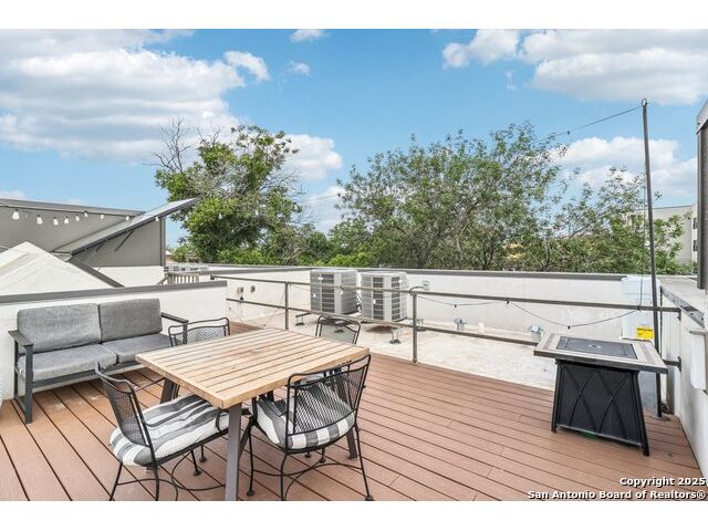Love where you live! This luxury townhome in San Antonio's SOJO Commons-located in the heart of Tobin Hill, just two blocks from the River Walk and Historic Pearl District-delivers an unbeatable blend of style, flexibility, and walkable city living. Featuring a private rooftop deck, studio suite with kitchenette, low HOA fees, this 3-bedroom, 3.5-bath home is ideal for owner-occupants, Airbnb investors, or those seeking a modern homestead with rental income potential. Live surrounded by San Antonio's best. From trendy restaurants and wine bars to live music venues and coffee shops, this neighborhood offers more than 20 dining options within a half mile. Walk off your lunch at the Pearl, catch a concert on St. Mary's Strip, then unwind on your rooftop deck with downtown skyline views-stretching from the Tower of the Americas to the Thompson Hotel. Enter through a gated community entry or via a serene street-side courtyard accented with crossvine and modern architectural charm. Inside, the first-floor studio suite features a kitchenette, full bathroom, and private patio, making it ideal for a separate rental unit, in-law suite, or private guest quarters. The second floor showcases open-concept living with tall ceilings, rich hardwood-style flooring, abundant natural light, and a sleek kitchen with a quartz island, stainless steel appliances, and modern finishes-ideal for entertaining or relaxed daily living. Upstairs, you'll find two spacious ensuite bedrooms, including a luxurious primary suite with dual walk-in closets and a spa-inspired bathroom. Top it off with a private rooftop deck, where you can host friends, relax under the stars, or take in panoramic views of downtown San Antonio. Additional features include: Built in 2018 with energy-efficient design, Attached 1-car garage with gated access, Contemporary townhome architecture, low HOA fees, Highly walkable and bikeable (Walk Score 87 / Bike Score 83), Low-maintenance urban living in a premium location. Whether you're looking for a San Antonio townhome with a rooftop deck, a Tobin Hill property near the Pearl, or a turnkey Short-Term investment opportunity, this home delivers style, location, and value. This is more than a home-it's a lifestyle. Ask me about the special features list and the floor plan, and schedule your private tour today!
