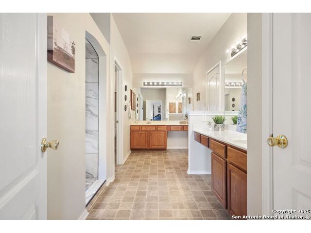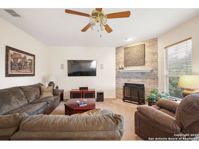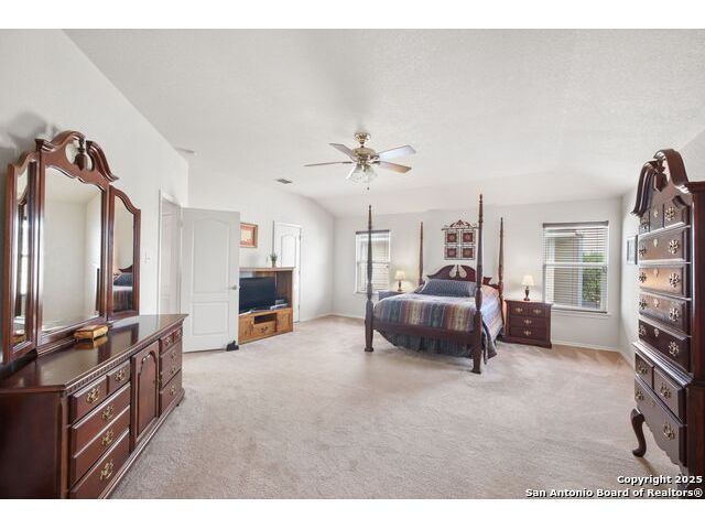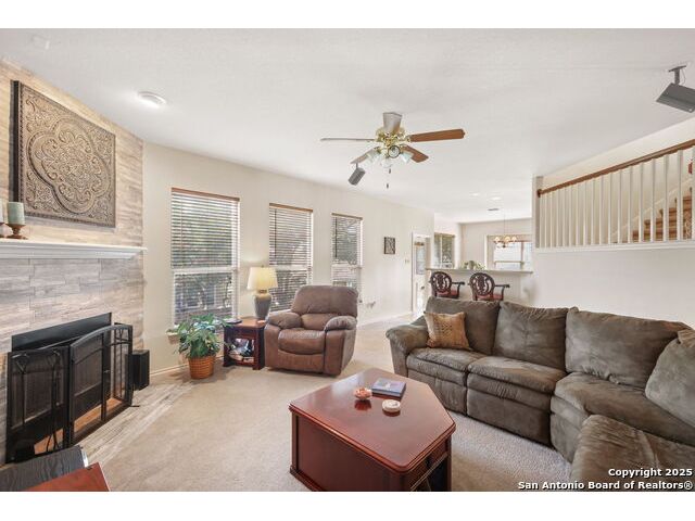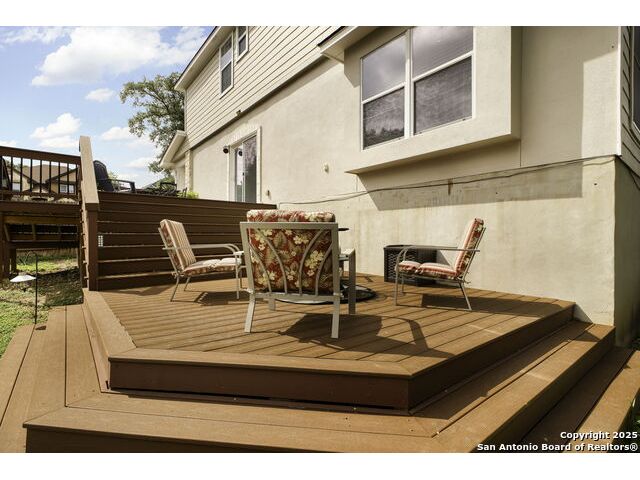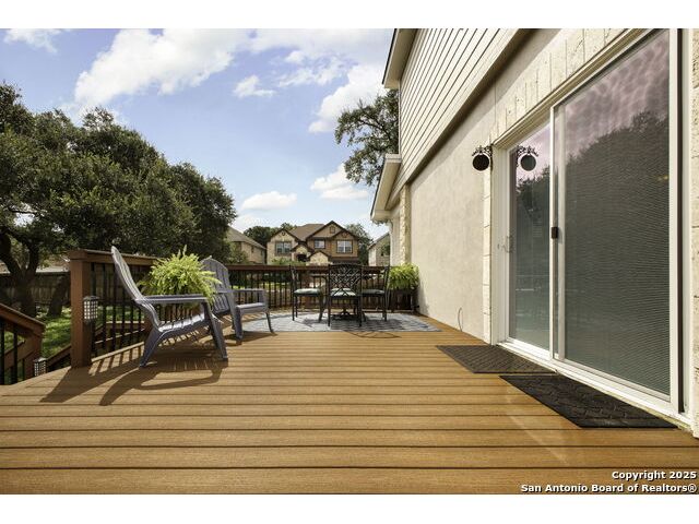 Meticulously maintained 4-bed home in gated Panther Creek at Stone Oak-ideal for growing families with room for everyone & NESID schools! Located on one of the largest lots in the community with mature trees and a multi-level composite deck. Spacious layout includes 2 living, 2 dining areas, upstairs game room and home office or gym downstairs! Kitchen with island, recent appliances, double ovens & walk-in pantry. Cozy family room w/ updated fireplace & surround sound. Oversized primary suite w/ dual vanities, walk-in shower & 2 closets. Laundry upstairs near bedrooms. Upgrades include: recent roof, interior & exterior paint, fixtures, 2 HVACs, water softener, radiant barrier, 9-zone sprinklers. Few mins to Whole Foods, Target, parks. Easy access to 281, 1604, Randolph AFB & airport.