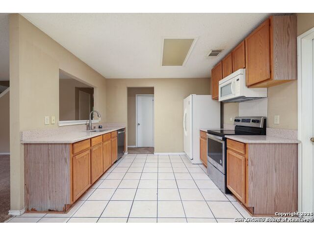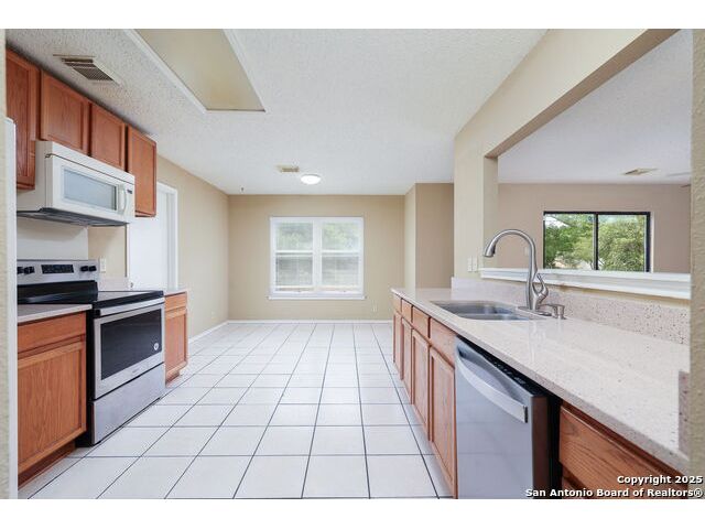 With over 2,100 square feet of living space, this well-maintained home offers multiple living and dining areas-perfect for both everyday living and entertaining guests. Upstairs, you'll find three generously sized bedrooms and a large game room that's ideal for movie nights, a play area, or a home office. The split-layout primary suite provides added privacy and includes a spacious walk-in closet and a tub/shower combo. The home comes fully equipped with all essential appliances-washer, dryer, refrigerator, and even a garage door opener-for added convenience. Enjoy outdoor living on the large backyard patio, ideal for weekend barbecues or peaceful evenings under the stars. Recent updates include: New carpet (2023), Newer windows throughout, New Water heater installed in December 2024, and Air conditioning unit less than 3 years old. This home combines comfort, space, and convenience-all in one inviting package.