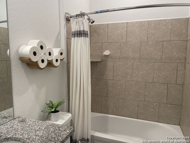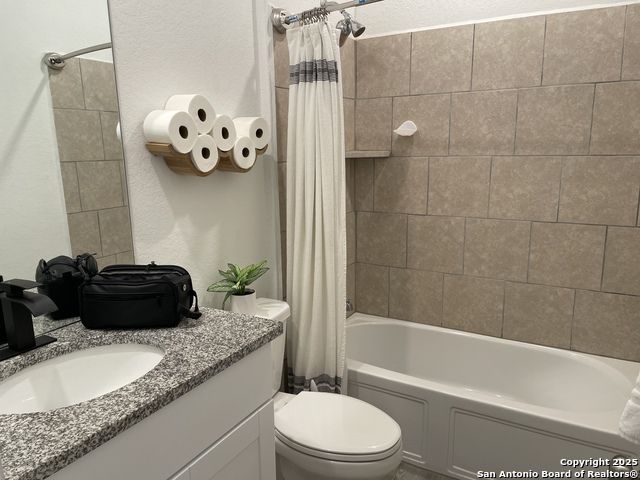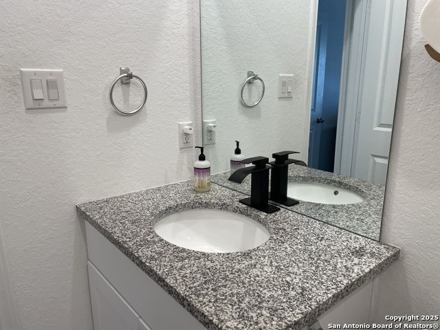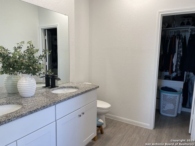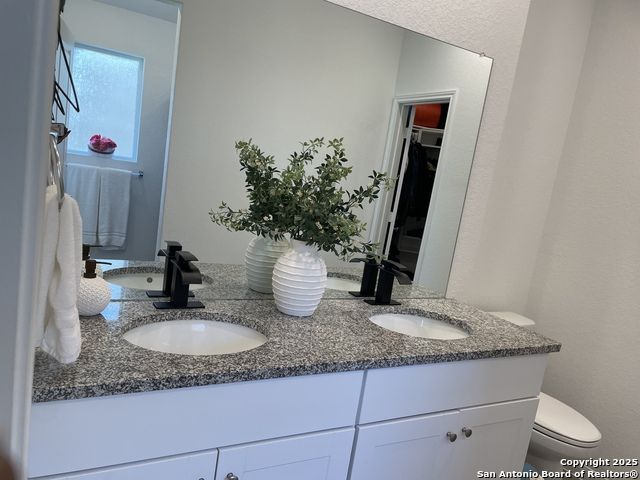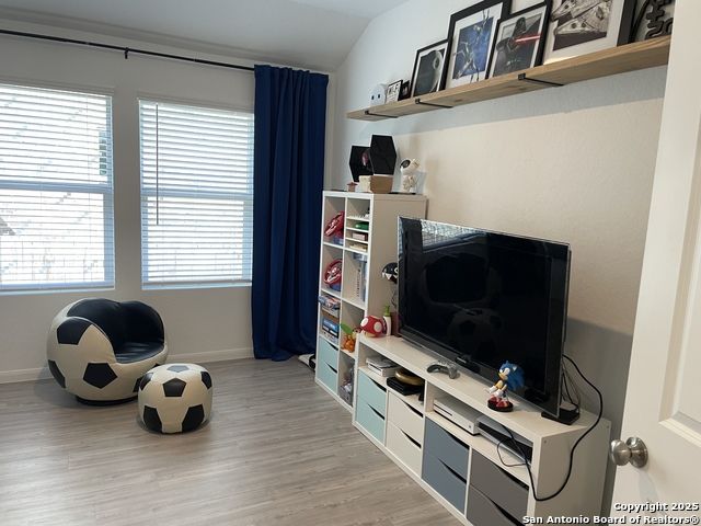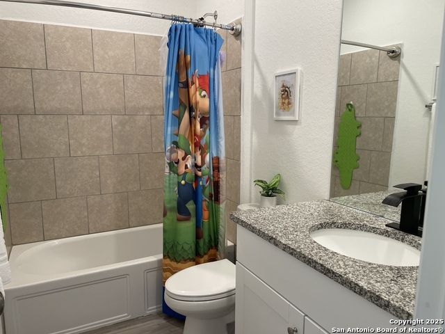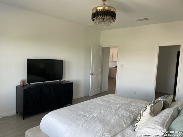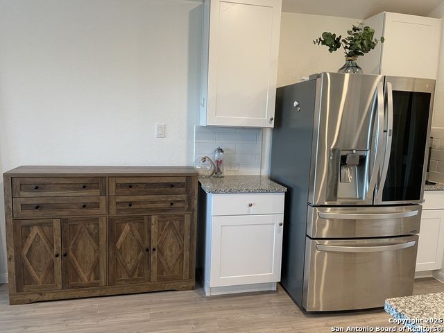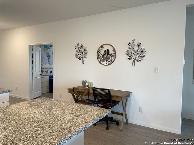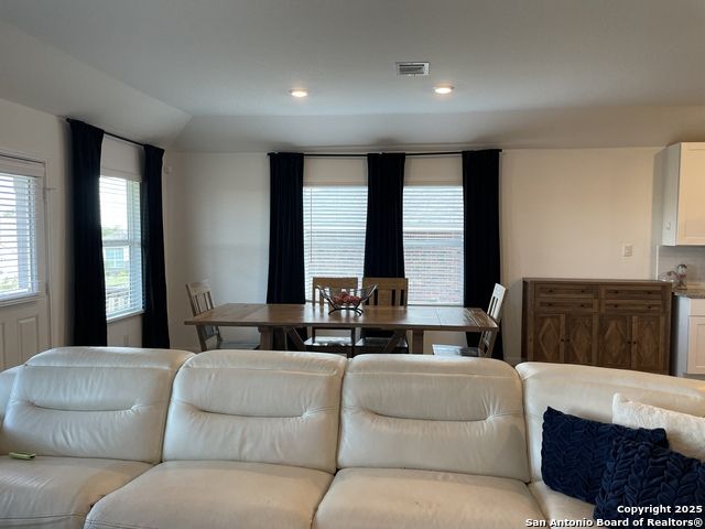 Welcome home! This warm 4 bedroom 3full bathroom, single story home is cozy and perfect for a growing family or anyone looking for space and comfort. An huge elongated entryway offers access to auxiliary bedrooms and bathrooms, there are elegant and unique lighting fixtures throughout the home, upgraded all faucets and the windows throughout welcome tons of natural light. There is a Microwave oven and Gas range in the kitchen along with a massive island and additional granite counter space, perfect for the chef in the family. The spacious living/dining room combo is accentuated by a lovely encased electric "mock" fireplace. There is a Bonus room perfect for a home office or craft room, etc. There is an airy primary suite with custom closet inserts. The back porch overlooks a nice size backyard with hill country views. This home also has a 3-car garage. The neighborhood has walking and biking trails, two swimming pools, a splash pad, basketball court, a playground, exercise facilities and clubhouse. At contracted buyer's request, sellers will paint over custom ceiling and wall in auxiliary bedrooms. Schedule a showing today!