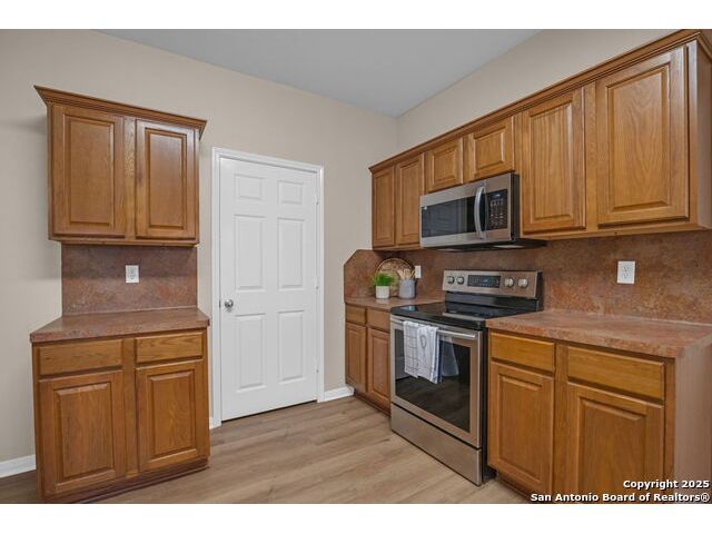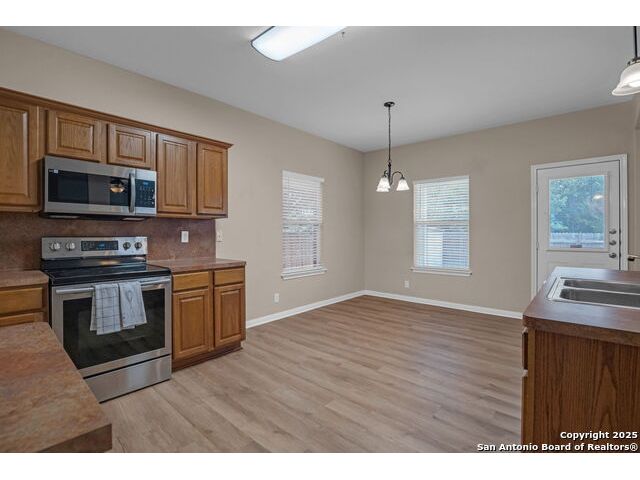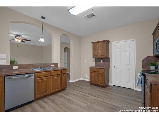 Wow! What a find in the heart of Cibolo! This spacious 5 bedroom, 3.5 bathroom home in Buffalo Crossing is move-in ready and full of updates! Step inside to discover brand new flooring throughout - a stylish mix of vinyl plank and fresh carpet - and a clean, refreshed feel with new paint and modern touches. The kitchen has also been updated with a new countertops, backsplash, dishwasher and microwave, making it ready for your next gathering. With plenty of space for everyone and a flexible layout perfect for entertaining or everyday living, this home offers comfort and style in all the right places. Located in a quiet, well-established neighborhood with quick access to Randolph AFB, shopping, and great schools.