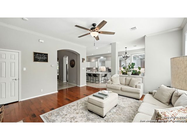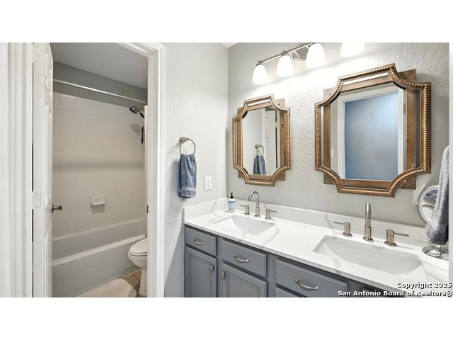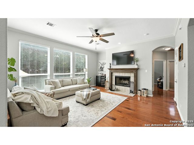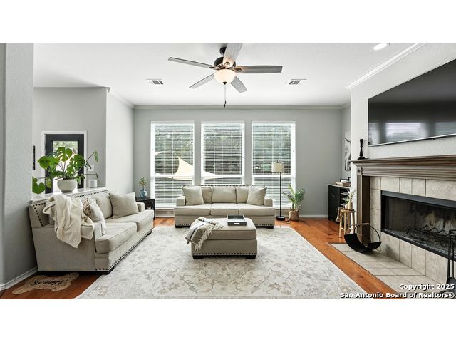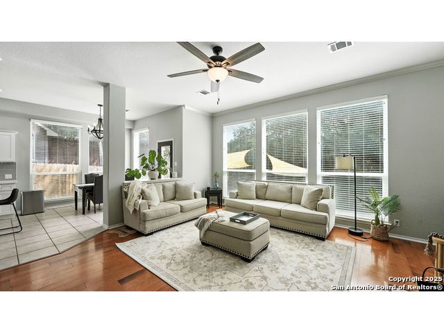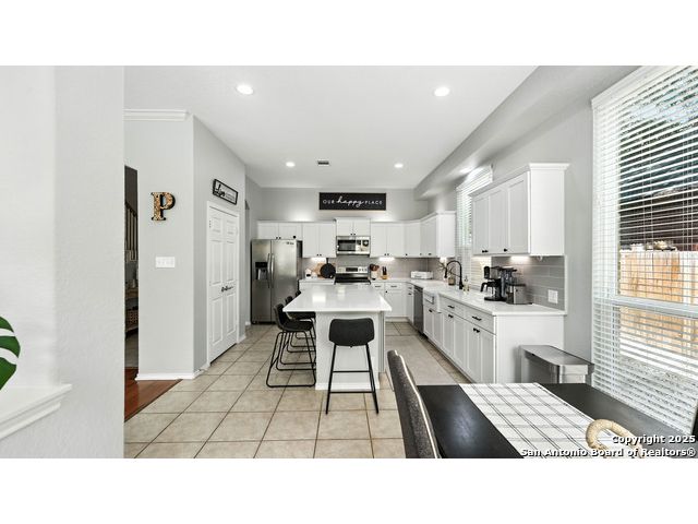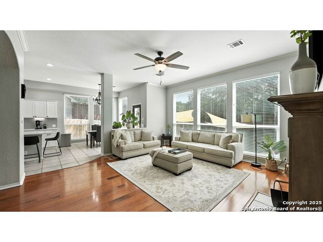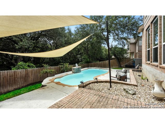 Welcome to your new Schertz retreat! This stunning 4-bedroom, 3-bath home checks all the boxes - inside and out. Step into a bright, airy layout with tall ceilings and fresh modern touches throughout. The fully renovated kitchen is ready for everyday living and entertaining, featuring updated cabinets, new counters, a farmhouse sink, stylish LED recessed lighting, and all-new appliances including the microwave and stove. Enjoy meals at the island, in the breakfast area, or the separate dining room for more formal gatherings. Downstairs, you'll find a guest-friendly bedroom with easy access to a full bath - perfect for visitors or a private office setup. The spacious living area has a cozy fireplace and plenty of natural light. Upstairs, the primary suite feels like a getaway with high ceilings, large windows, and a beautifully updated bathroom complete with new cabinets, counters, a double sink, a refreshed shower, soaking tub, new tile, faucets, and fixtures. The additional bathrooms have been upgraded too, with new counters, sinks, fixtures, and toilets. Step outside to your backyard oasis - a fiberglass pool that's been professionally maintained with a new pool pump, plus partial gutters, repaired sprinklers, and low-maintenance landscaping with sails and rocks. The patio is ready for summer BBQs and poolside lounging, all backing to a peaceful greenbelt for added privacy. Other thoughtful updates include a new garage door opener (one of two) and a serviced sprinkler system with all zones working. All this, just minutes from I-35, shopping, dining, and about 15 mins to Randolph AFB.